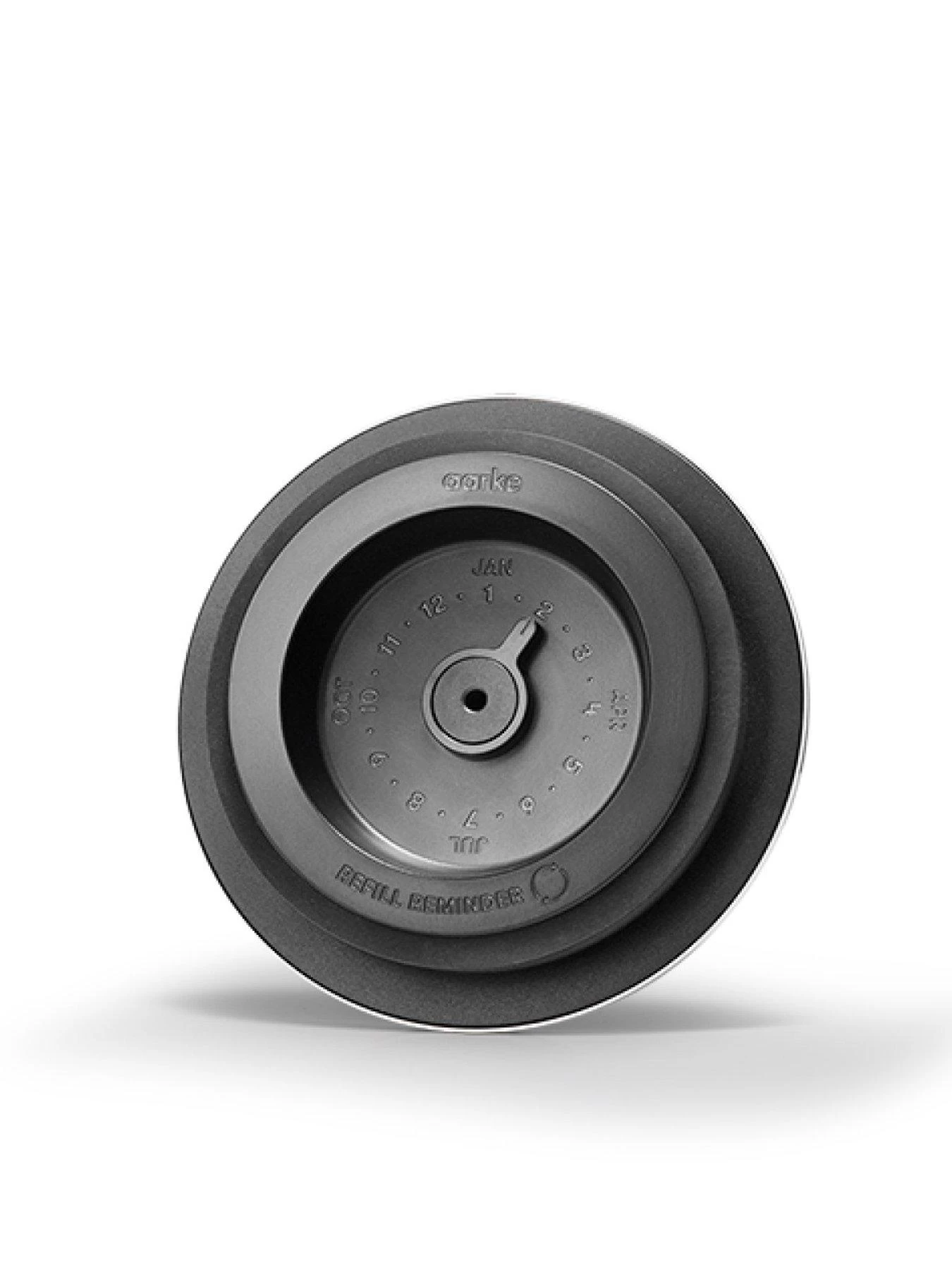 In the lid, there’s a dial you can set, reminding you to change the filter granules every four weeks.
