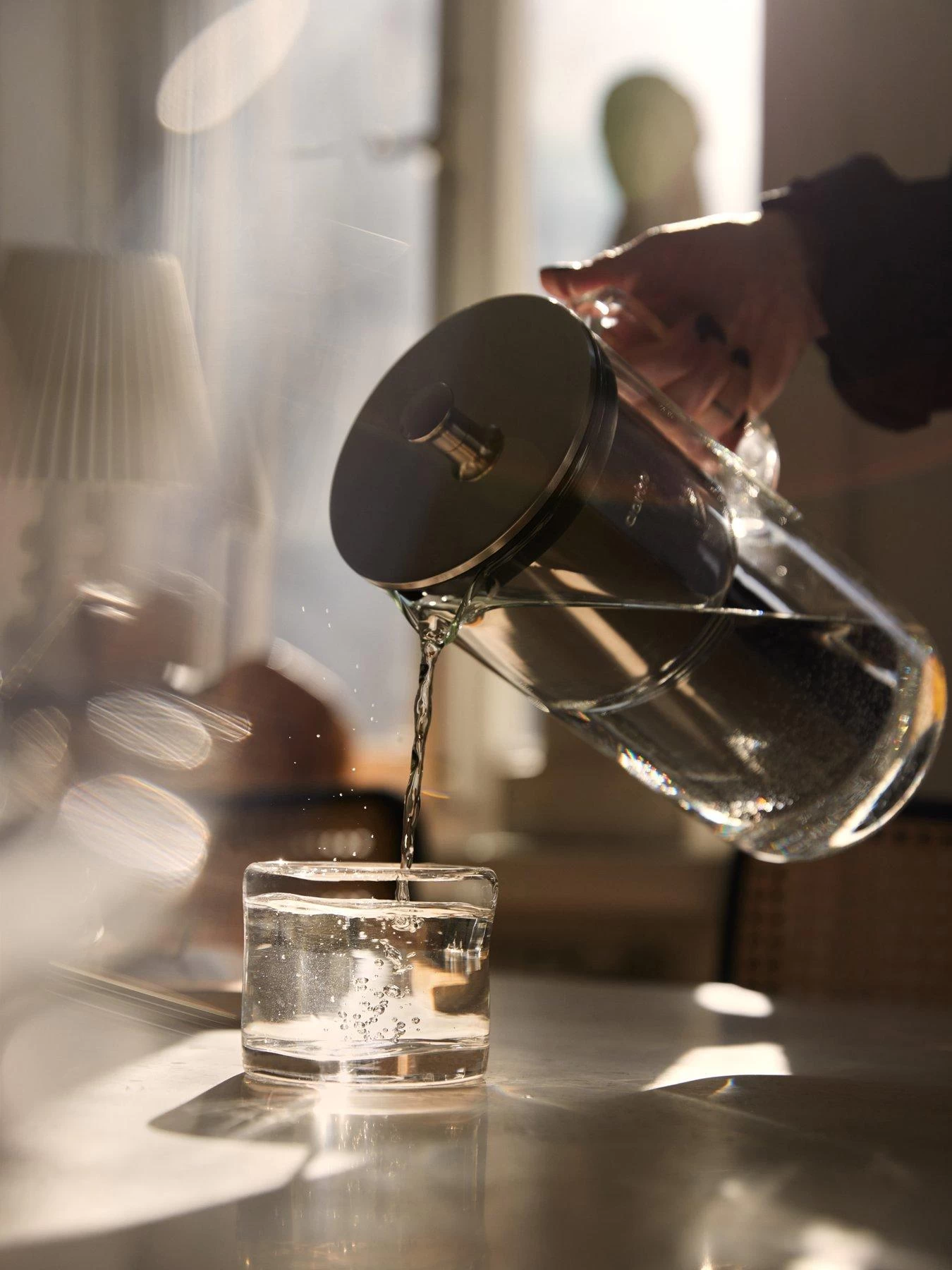 The Aarke Purifier is a patented, high-quality water filter pitcher in glass and stainless steel – making it more sustainable and more hygienic. It features the unique, refillable cartridge and Pure filter granules. The filter granules are poured into the stainless-steel filter cartridge and reduce chlorine, heavy metals and limescale. It’s made in