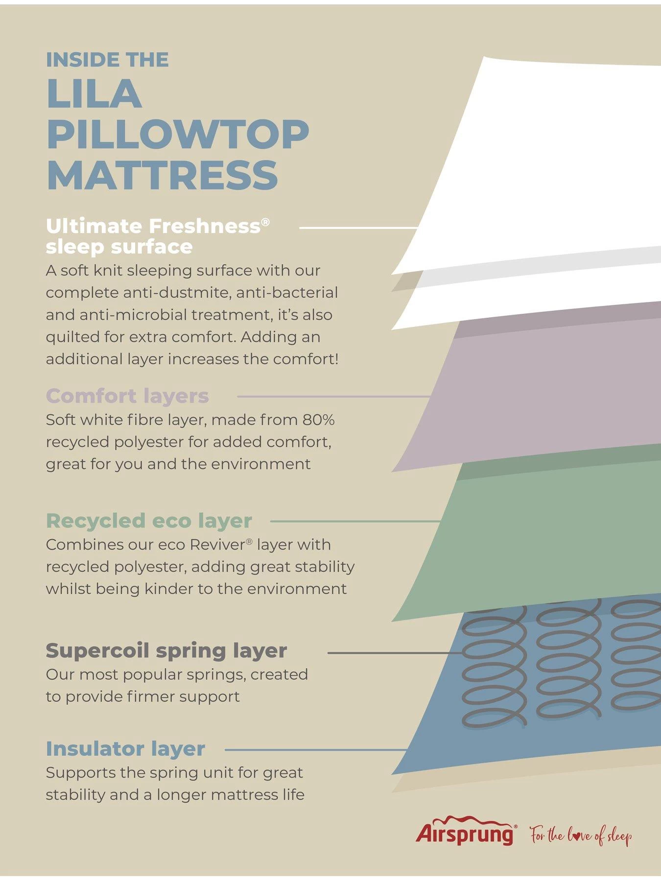 The soft knit, quilted fabric sleeping surface has a lovely touch and also an antibacterial Ultimate Freshness Treatment to help keep allergies at bay.