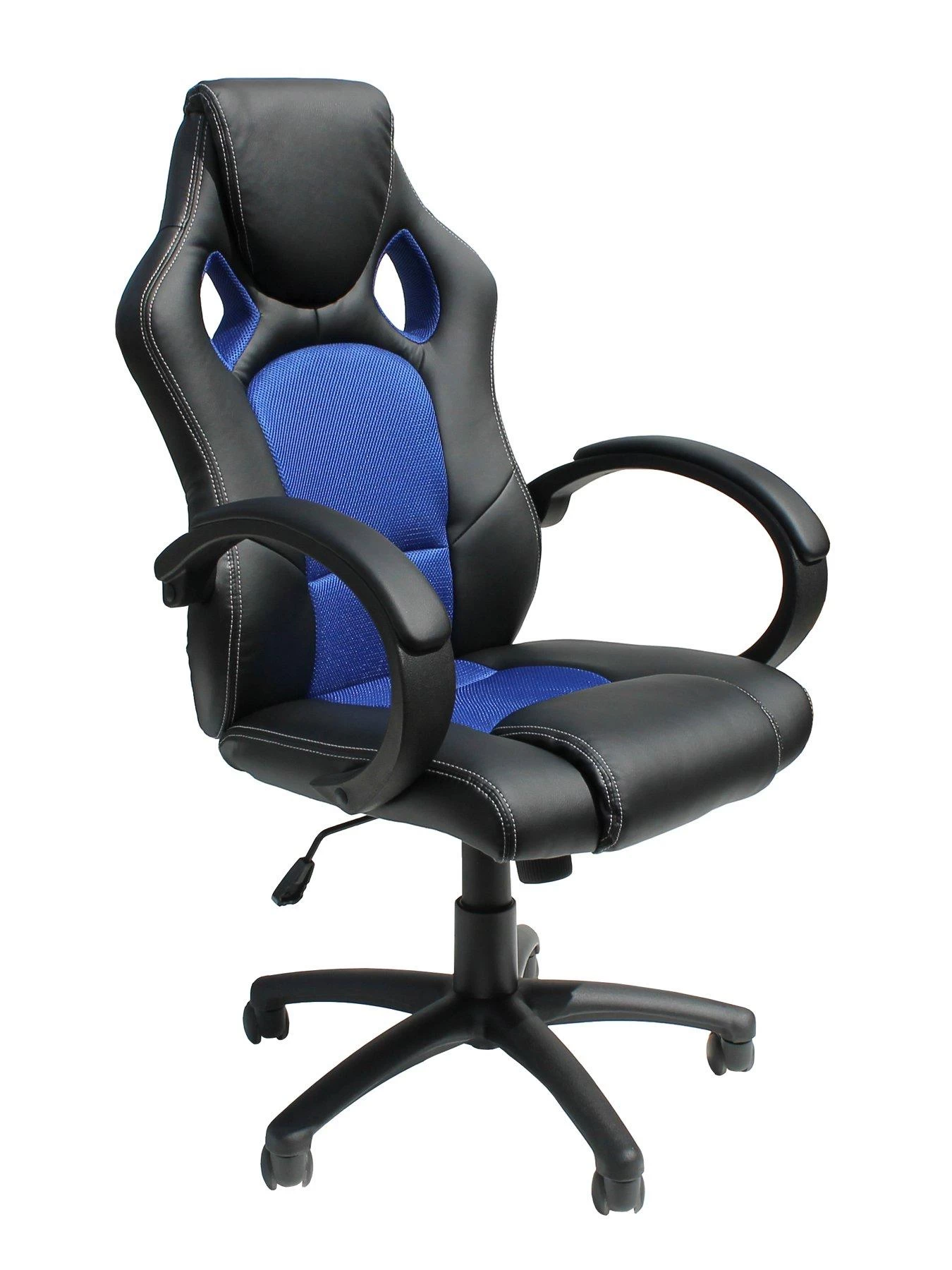 The racing style design features a colour blend of black and blue, with white stitching, while generous seat padding and curved padded arms keep you sitting comfortably. Height adjustable between 111 – 121 cm, it’s finished with a locking tilt mechanism with tension control.