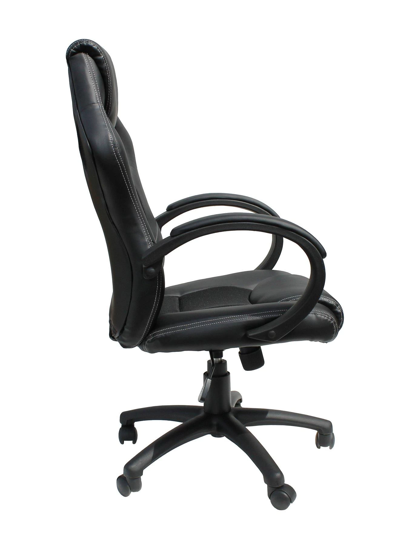 The racing style design features black with white contrast stitching, while generous seat padding and curved padded arms keep you sitting comfortably. Height adjustable between 111 – 121 cm, it’s finished with a locking tilt mechanism with tension control.