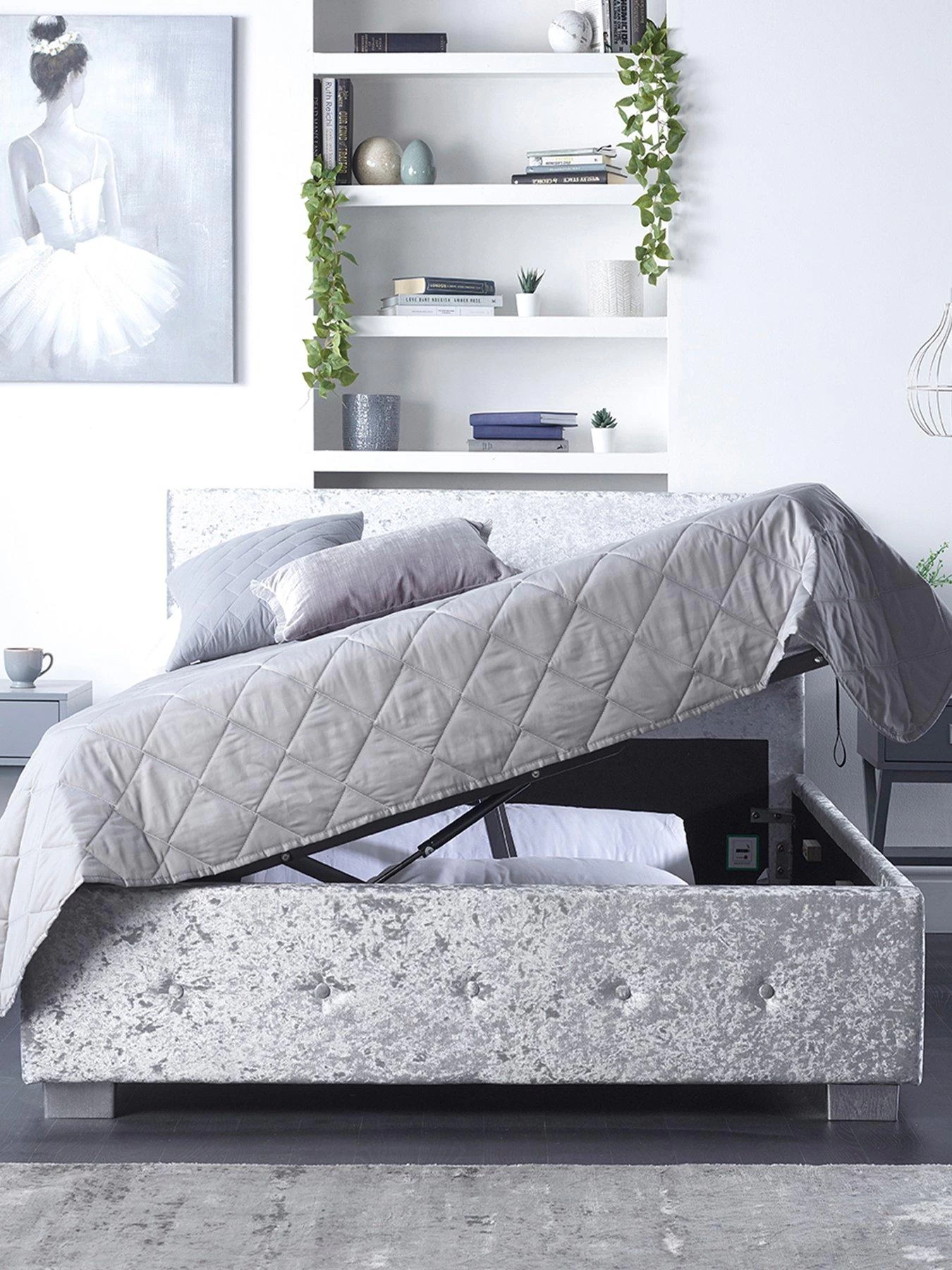 Aspire Crushed Velvet Side Opening Ottoman Storage Double Bed Frame