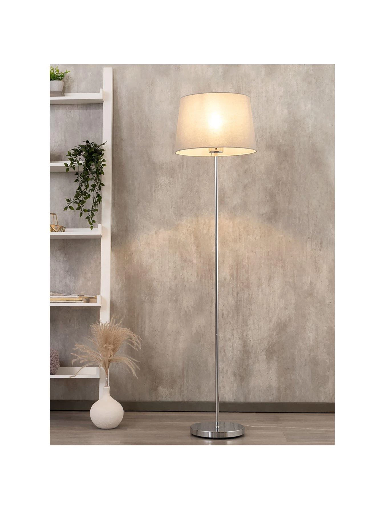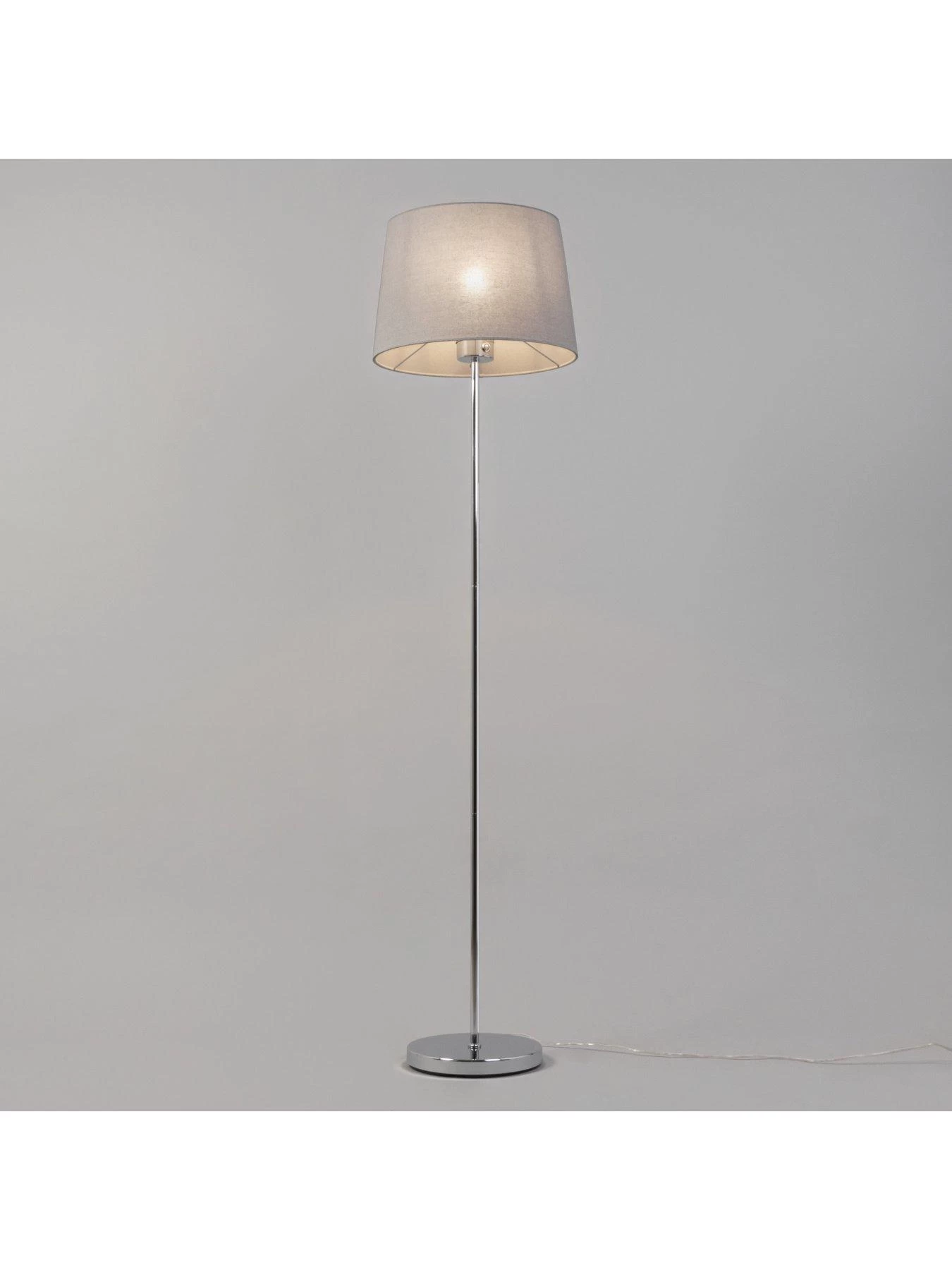 So easy to turn off and on, the Mira floor lamp is perfect for sitting in a gloomy corner of a bedroom or living room. Measuring 155 cm in height, it features a slimline stem that’s finished in shiny chrome. This leads up towards a soft grey linen shade, while the touch function means a gentle tap will turn the light on and off. Requires 1x E27 GLS 10W LED bulb (not included).