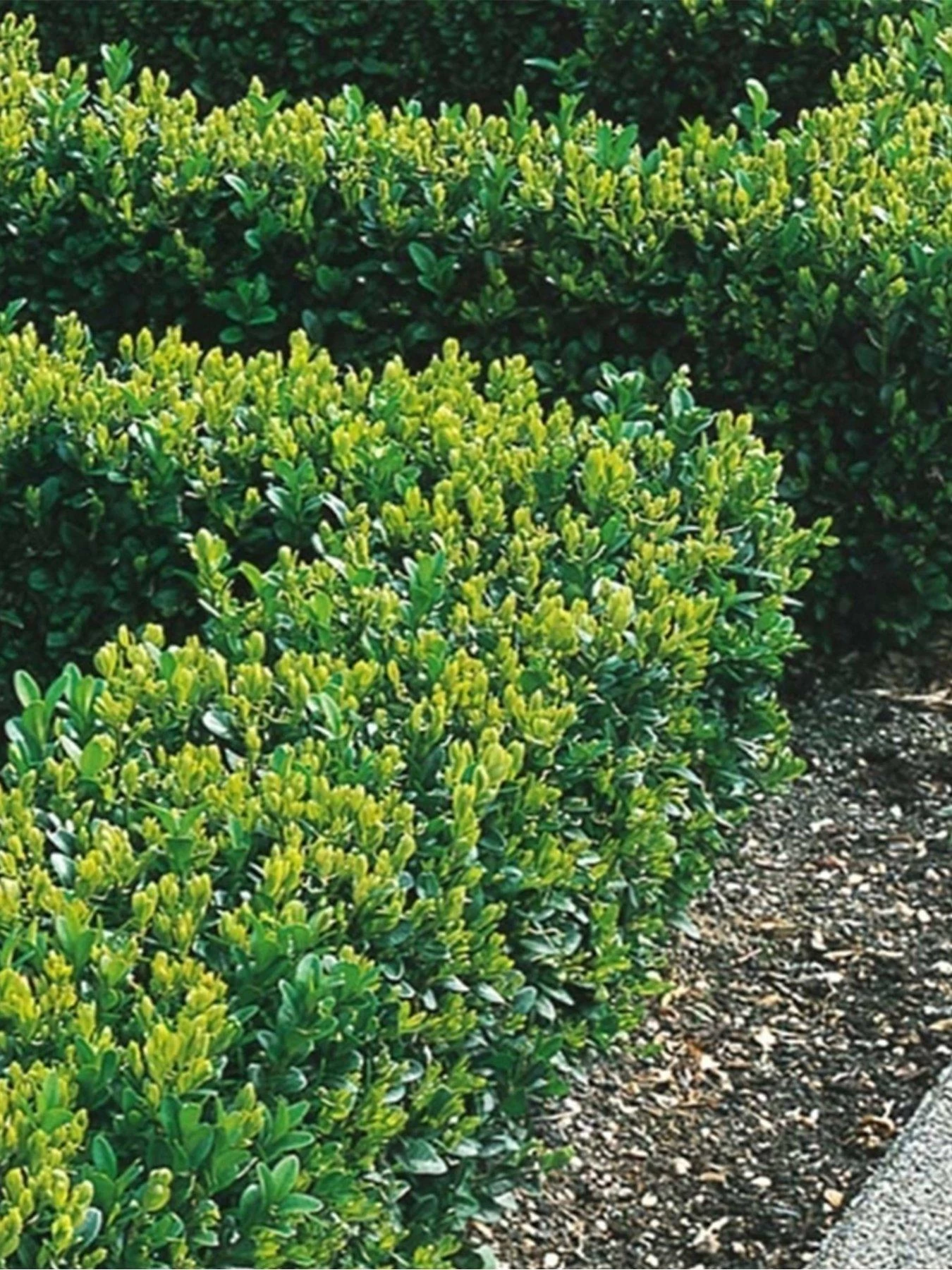 Buxus sempervirens is a large, slow-growing evergreen shrub with small glossy oval leaves with small yellowish flowers in the leaf axils. Ideal hedging for pathways, grows around 10-15cm per year. Plant in partial or full shade.