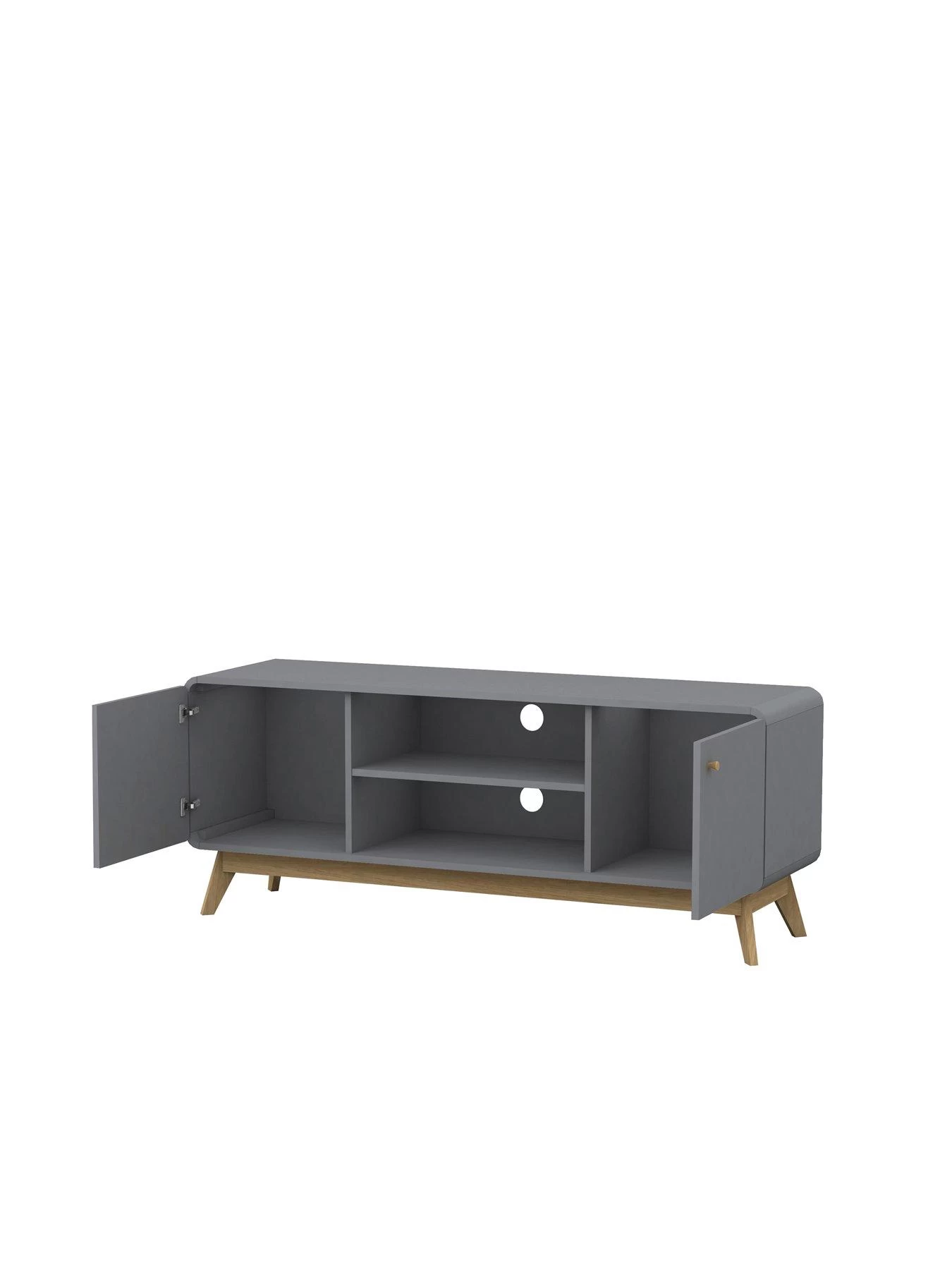 Fill your space with the curvy, “Skandi-Style” of the Cassie Range of furniture pieces. The Loft24 Cassie 2 Door TV Stand boasts modern rounded corners, 4 compartments to home all of your favourite AV accessories. Avalaible in numerous colours.
