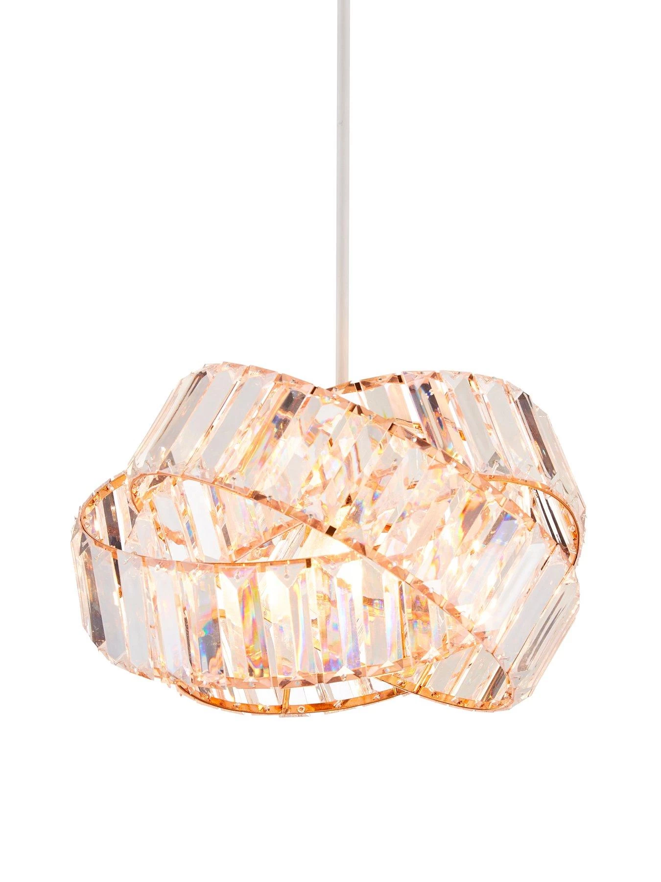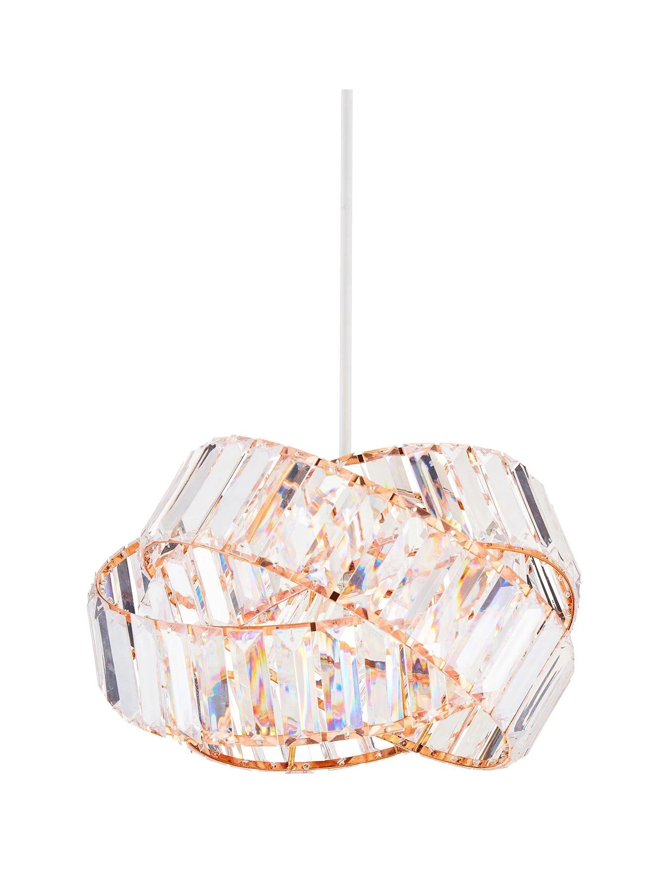 Easy to fit for a transformation you’ll see in your space right away, this opulent pendant features a series of interlinked rings made from rose gold coloured metal and stunning acrylic insets.