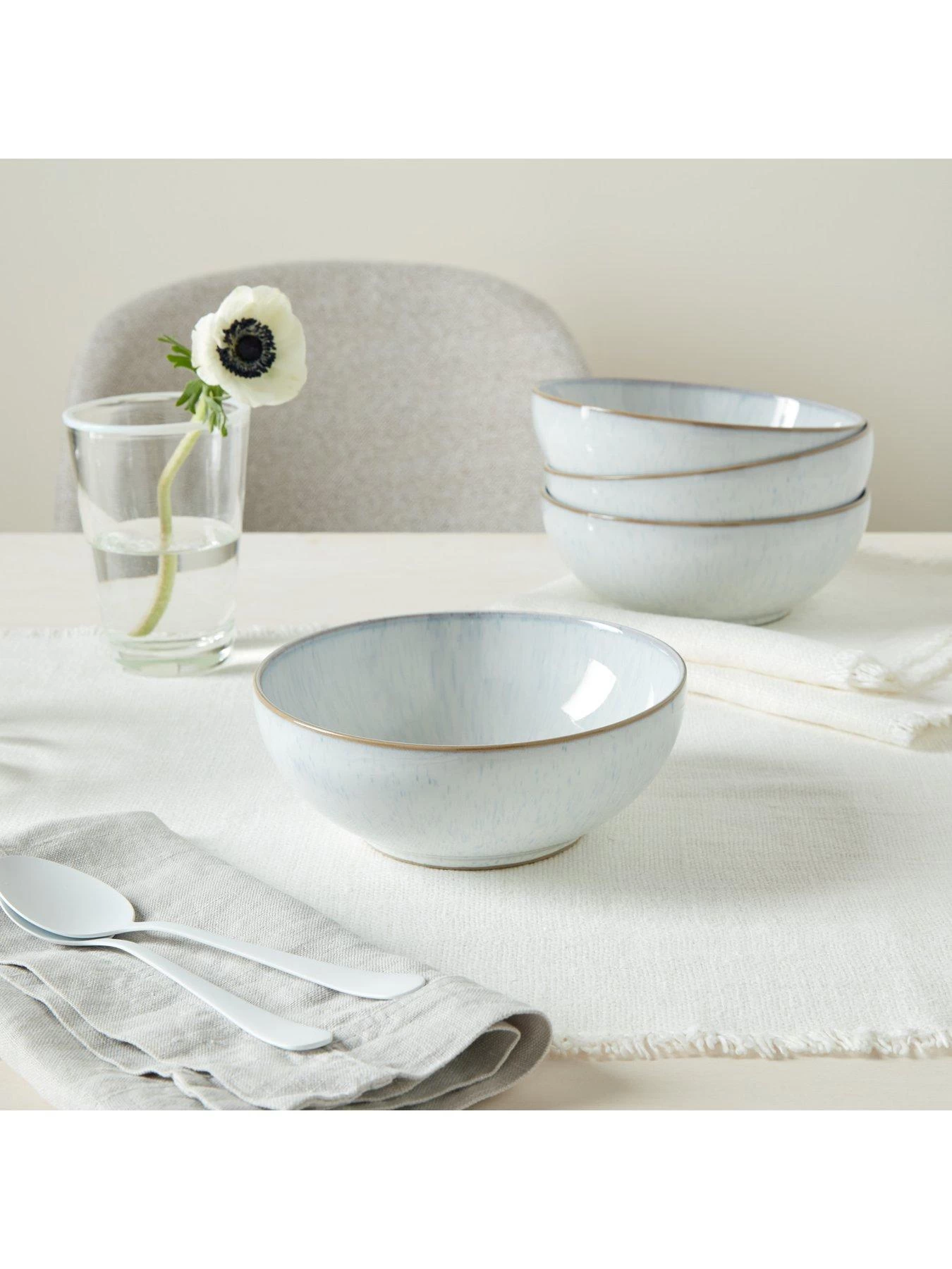 Denby White Speckle 12 Piece Tableware Set is perfect for new home owners or for re-energising your current tableware. Its beautiful glaze is subtle enough to fit with previous ceramics, but also creates an impact. Ideal for formal family meals or for every day use. Set includes x4 Dinner plates, x4 Medium Plates and x4 Cereal Bowls. The beauty of the White Speckle glaze is its effortless simplicity. With a lovely soft textured glaze combined with Denby iconic shapes creating a collection that is ideal for those wanting flexibility in their tableware. This range allows you to live with it either as a standalone collection or to be complemented by other colours. Hand-crafted in Derbyshire, this set is made to last. It’s durability means it is oven safe to gradually heat to a maximum of 250 degrees. Dishwasher safe, although we do recommend handwashing for more longevity. Microwavable and Freezer safe for ease of use, helping to create a stress-free kitchen.