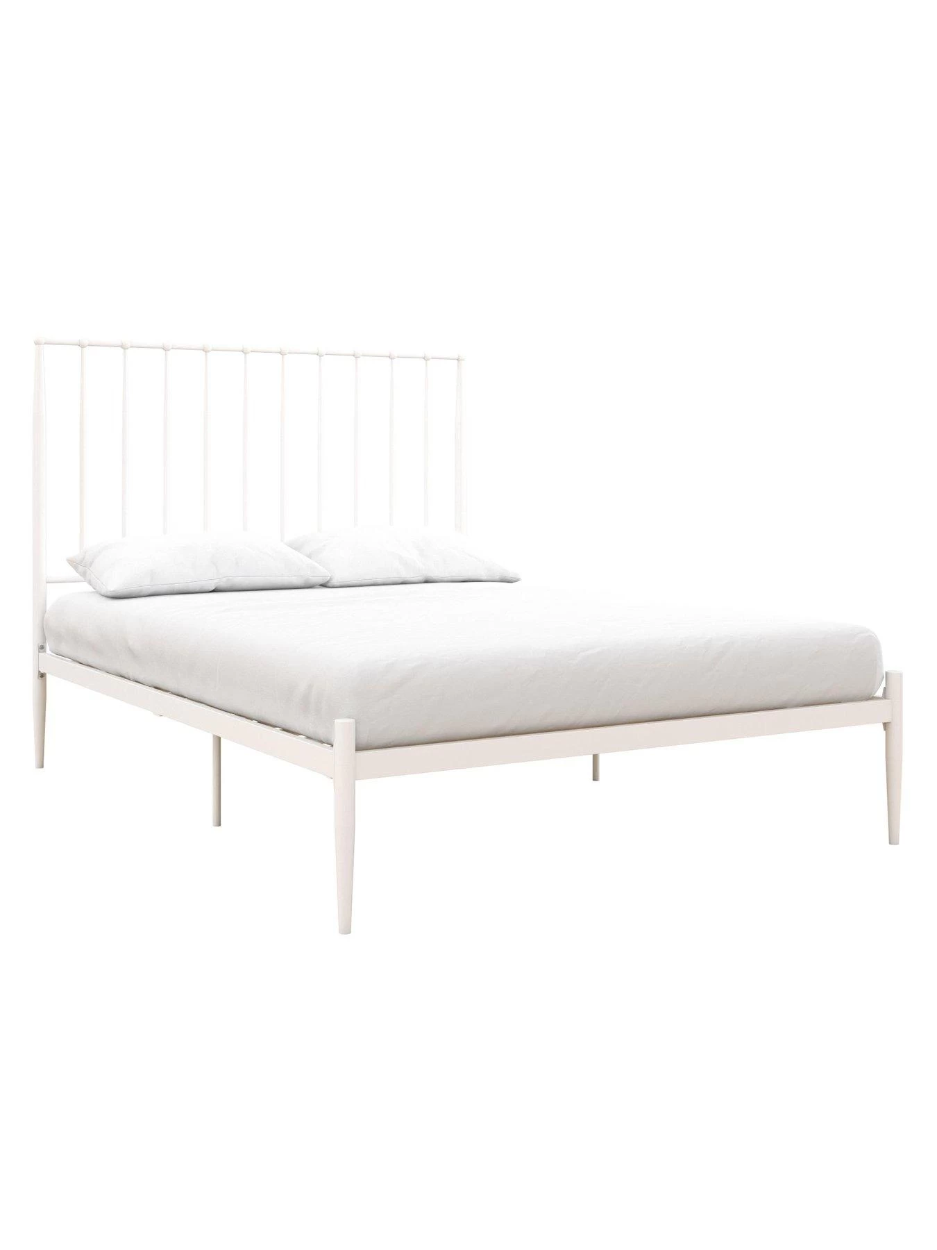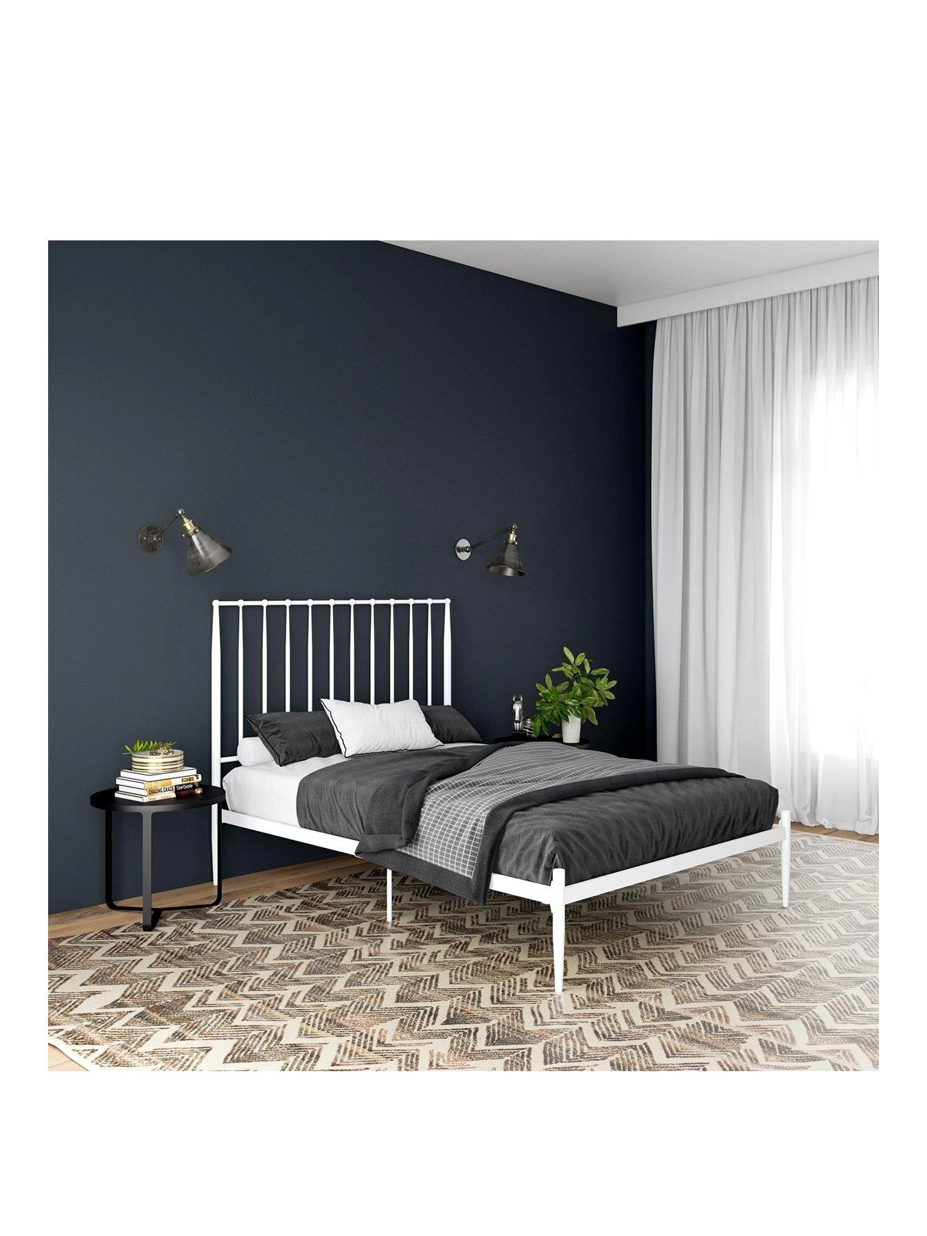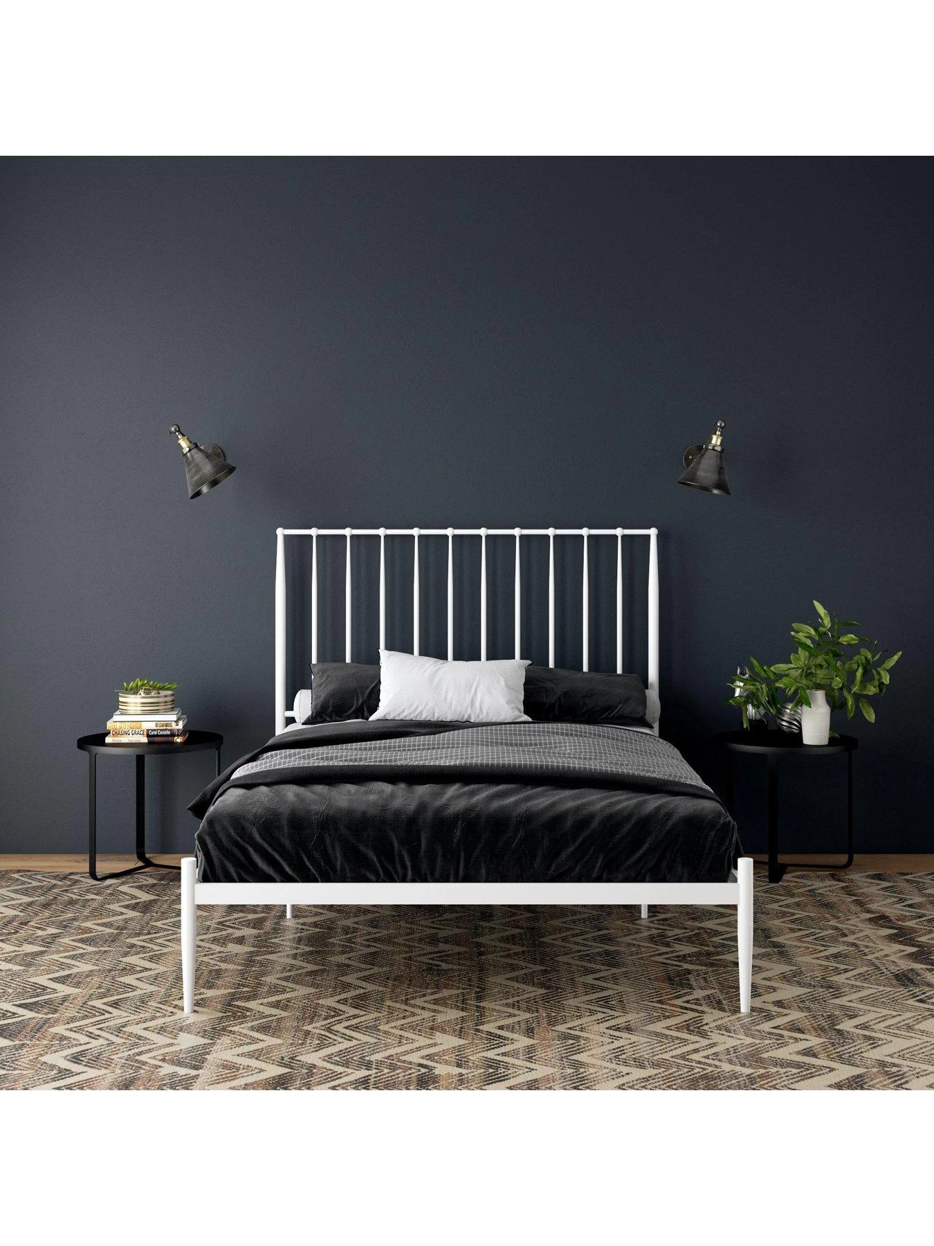 Made from sturdy metal, it comes in bedroom brightening white finish that will go with all sorts of room styles and bedding colours. The stunning headboard features tapered finials which are echoed by the legs, giving it a slimline appearance that won’t overwhelm your room.