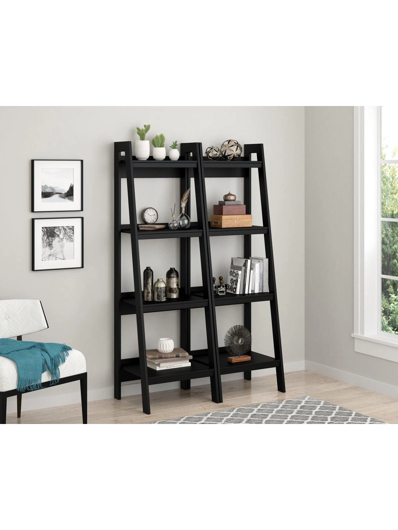 Set of 2 Lawrence Ladder Bookcases in Black