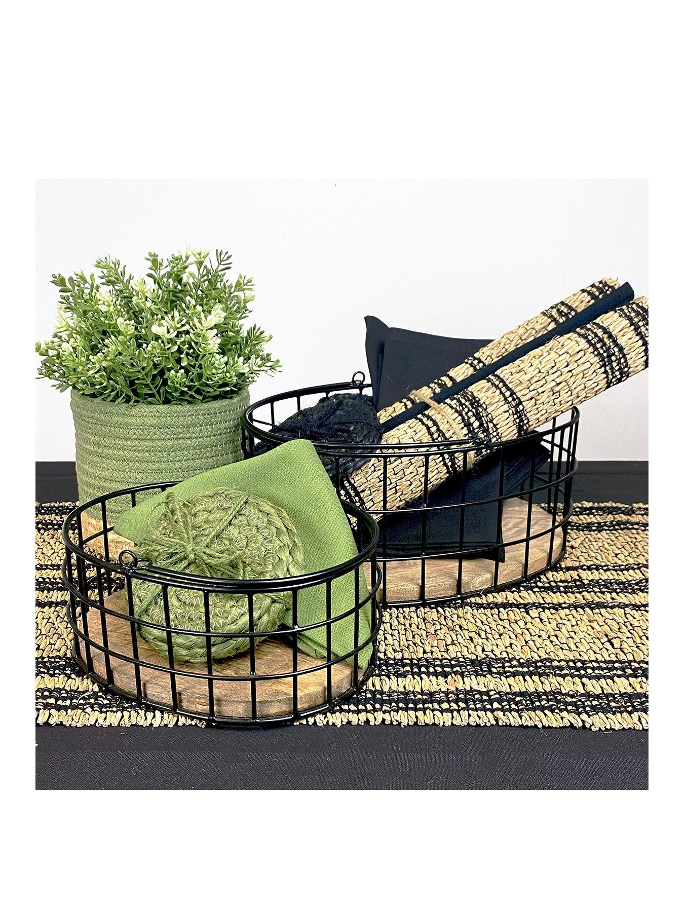 Aldwych is a set of two nested baskets from the Naturelle collection. Base is made from mango wood where the frame is made from metal. These stylish baskets come with handles making it easy to carry across your home. Large basket: 21.5x28x12h, Small basket: 16.5x21x9 cm.