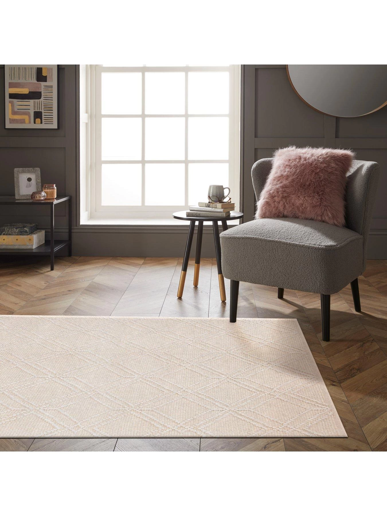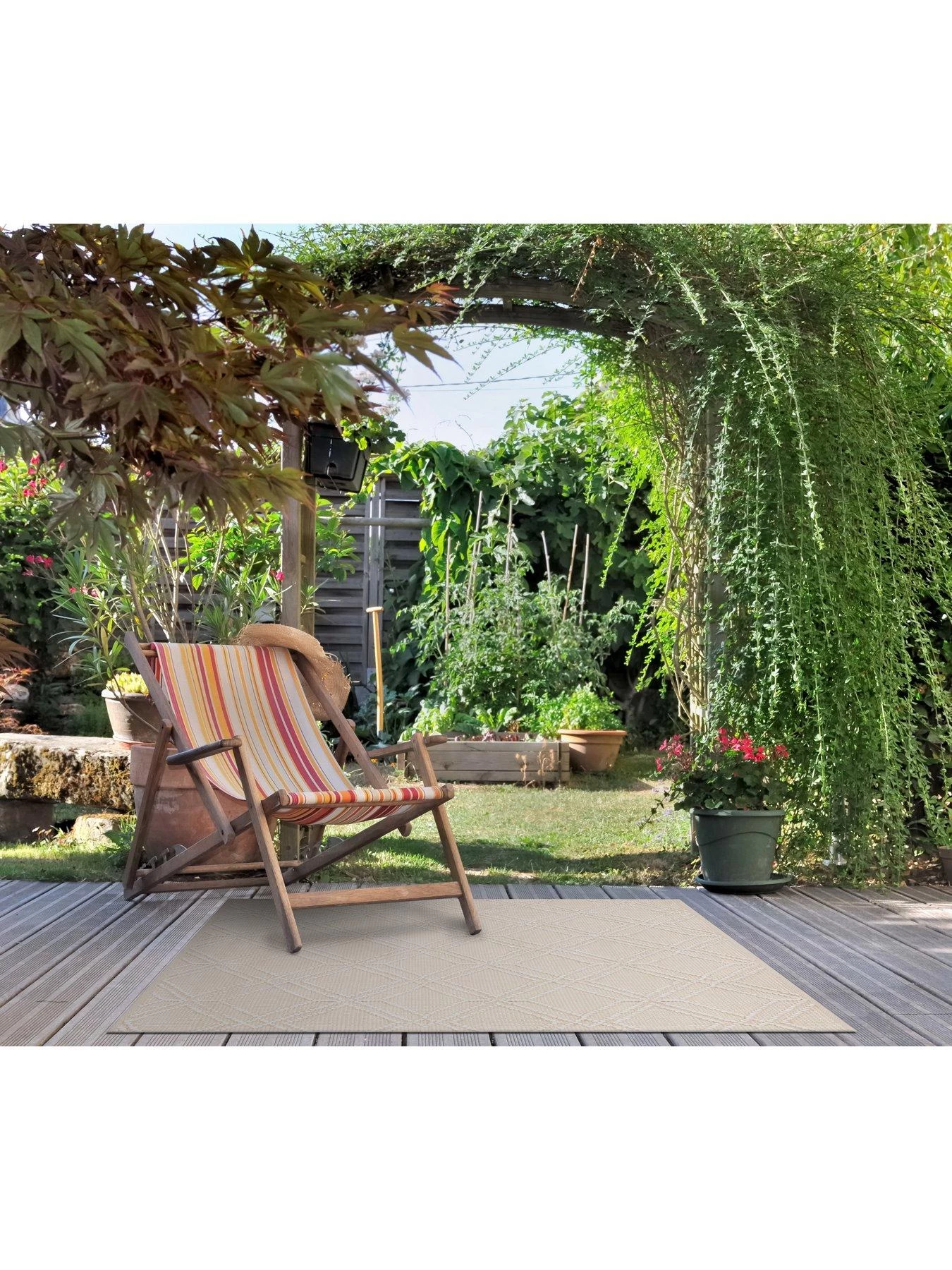 Introducing Blenheim from our Revival collection. Our designers have collaborated science with their artistic talent to create rugs made from 100% recycled plastic bottles and to top it off this rug can also be used outdoors. Blenheim was hand woven by our artisans featuring diamonds formed of small woven circles.