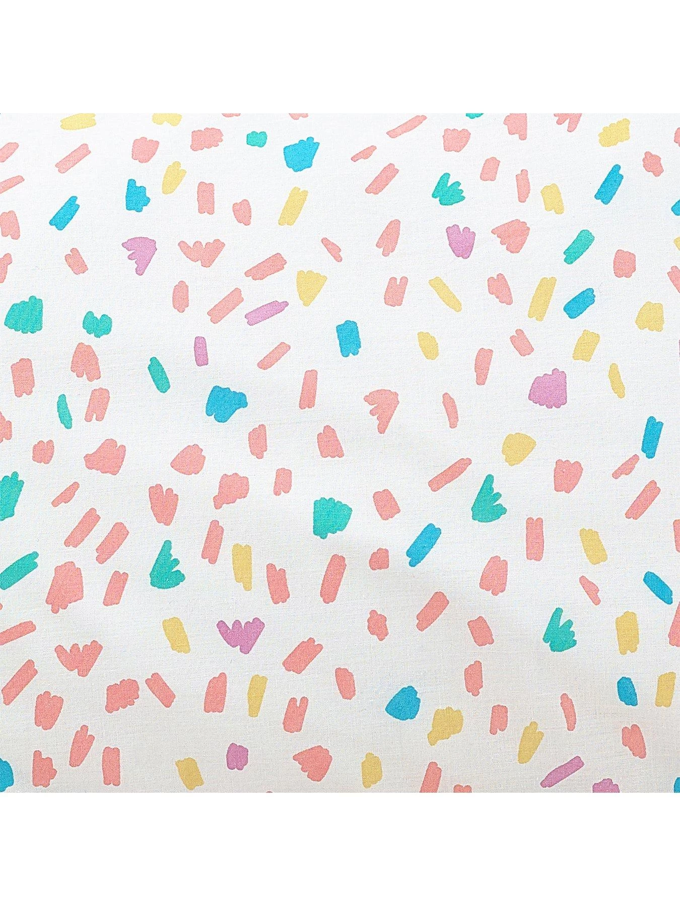 Bold and vibrant in a coral-toned palette, the delightful design captures the attention with palm trees all over in green, blue, purple and yellow. Continuing the personality on the reverse is a multicoloured confetti print, so it’s easy to switch up the look just by flipping it over.