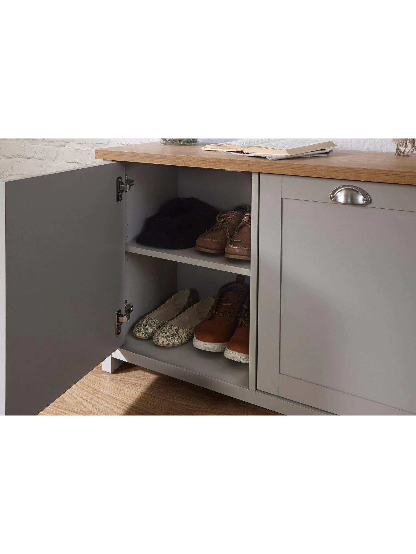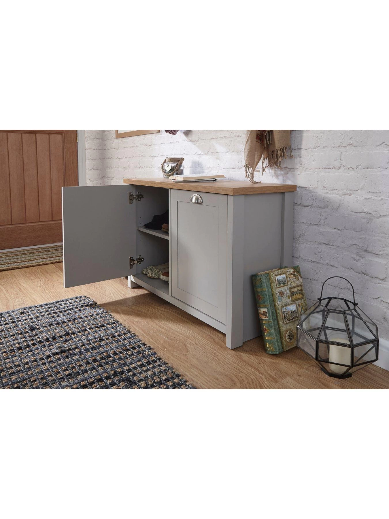 GFW Lancaster 2 Door Shoe Storage Cabinet in Grey/Oak Veneers