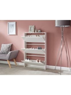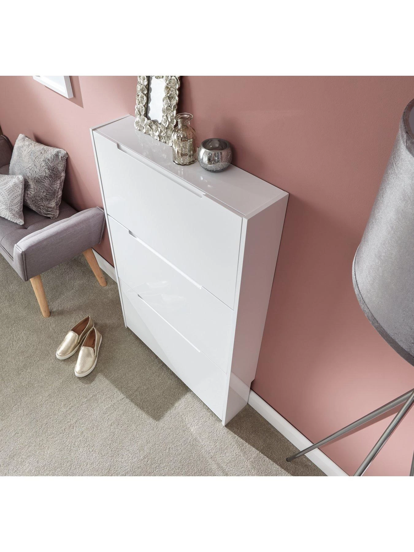 GFW Narrow High Gloss 3 Tier Shoe Cabinet in White