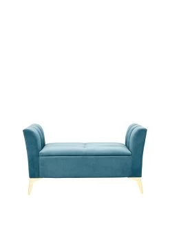 Creating a comfy seat you can relax on in your bedroom, it opens up to reveal a handy storage area for spare bedding, towels and more. Its elegant appearance is finished with strikingly angled metal feet in a rich gold colourway.