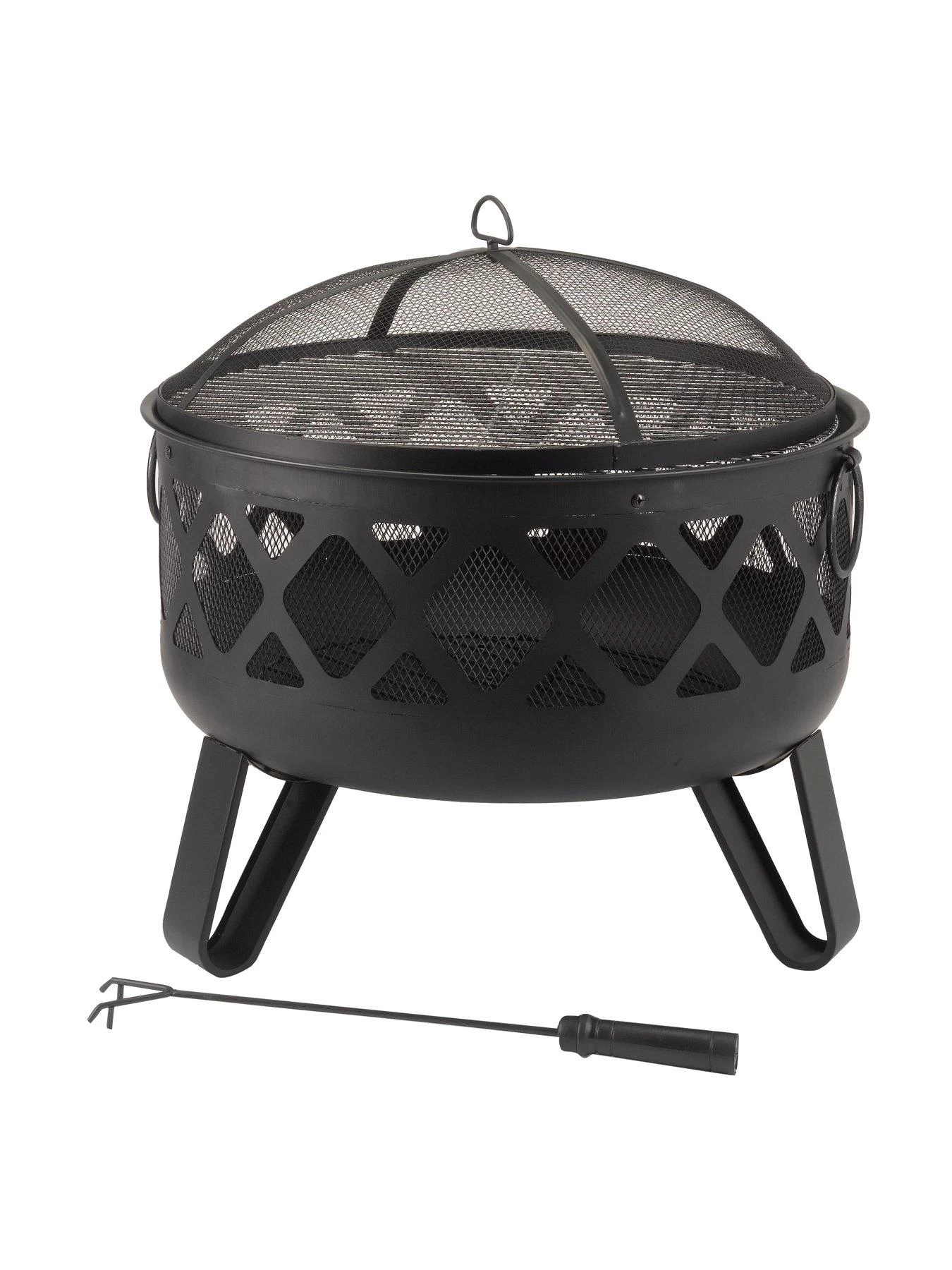 Keep the cold at bay with this eye-catching lattice design deepbowl firepit. It is a striking centrepiece for any outdoor space, crafted from hard-wearing powder-coated steel with a black high-temperature paint finish.