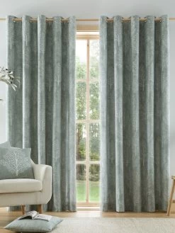 Catherine Lansfield Crushed Velvet Glamour Sequin Fully Lined Eyelet Curtains In Grey