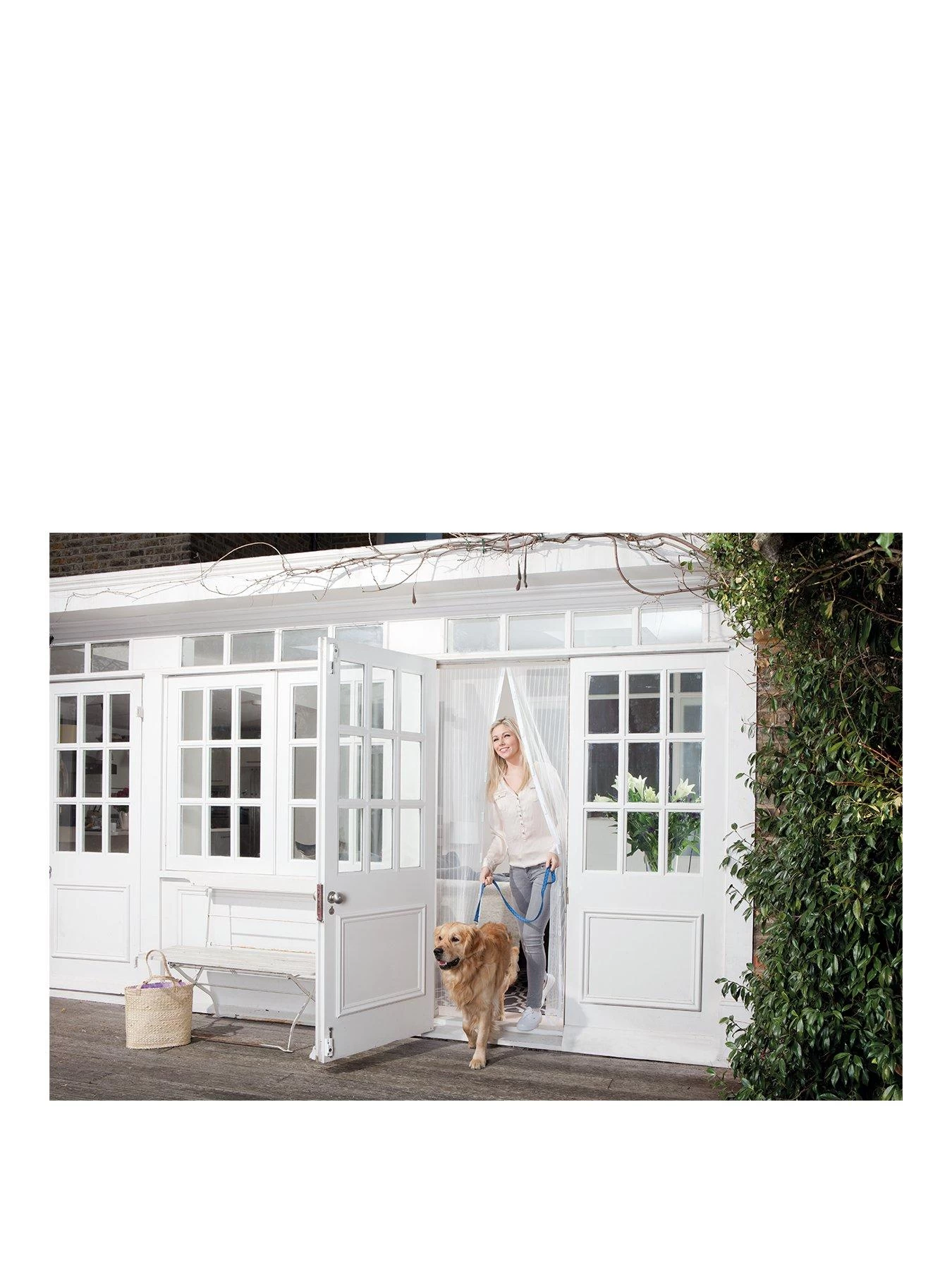 A series 18 snap-close magnets down the opening of the door screen mean that as you walk through it, it closes shut behind you in seconds, so you don’t need to worry closing it when you pop into the garden! It’s weighted at the bottom to ensure its stability and it can be fitted to your door without the need for tools, screws or nails, making it perfect for busy households. 1 year guarantee.