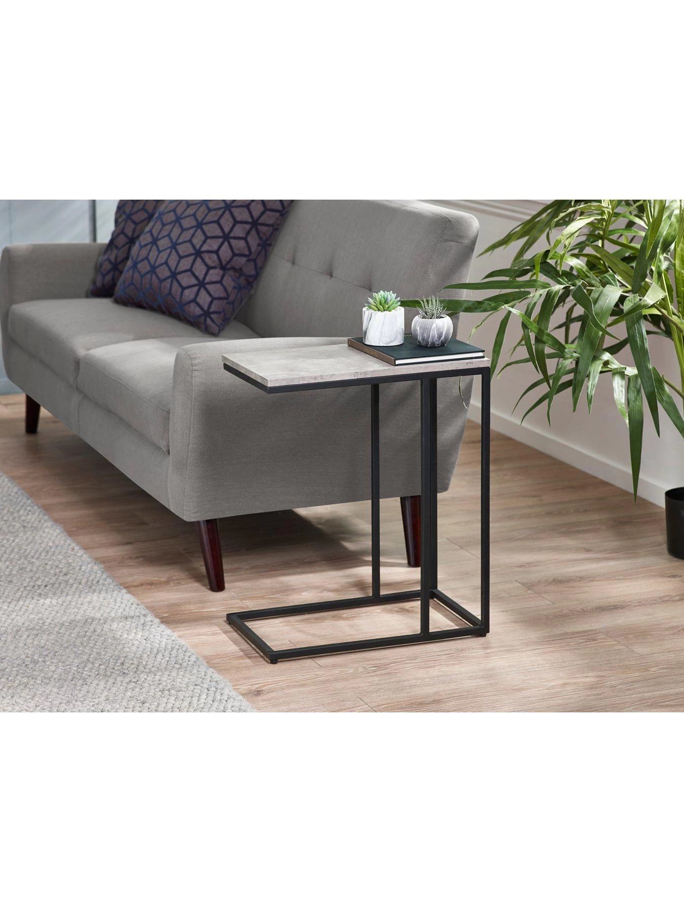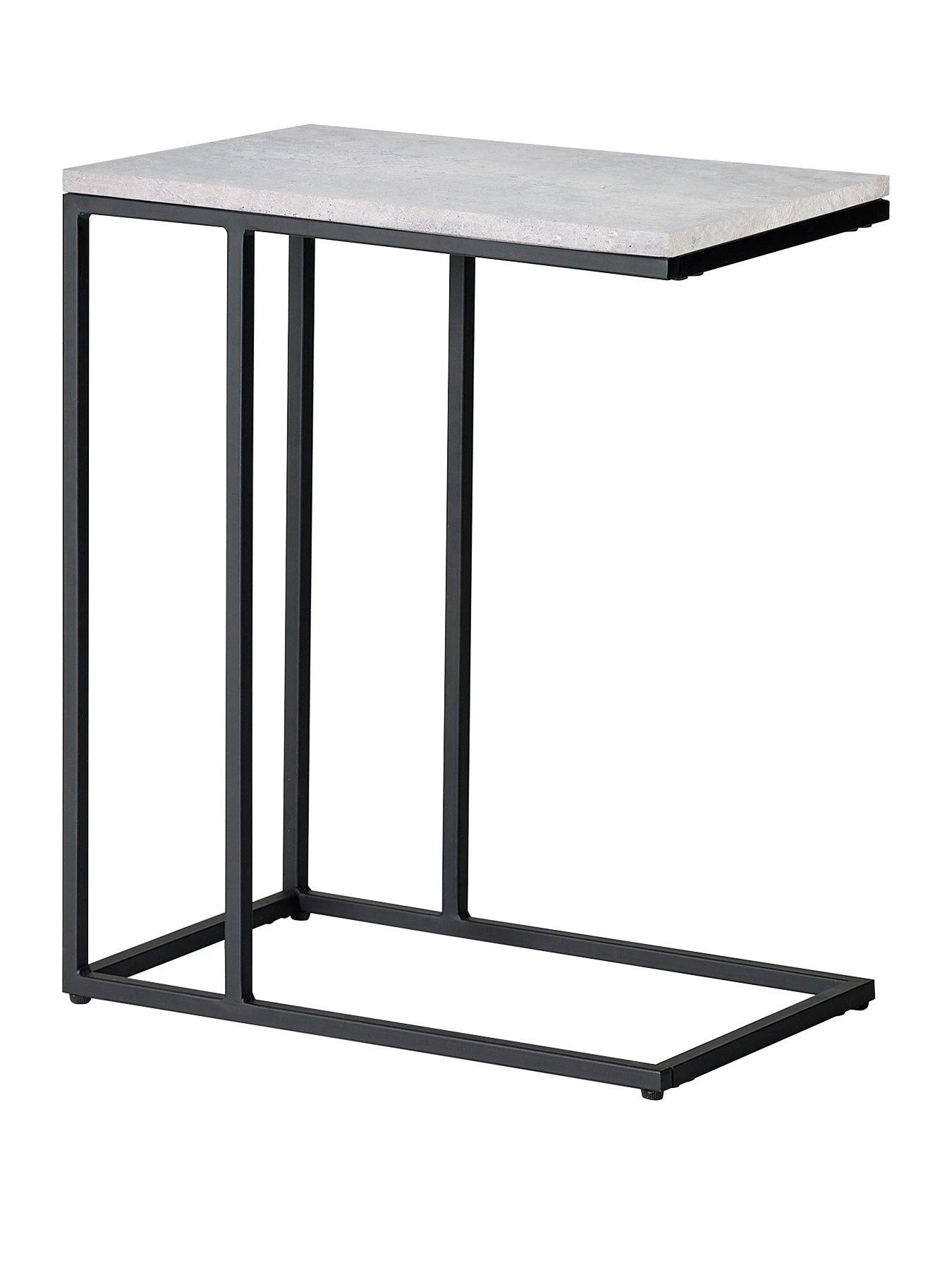 The grey concrete-effect top sits on a black coated metal base that gives it a subtle industrial edge, and the shape of the base allows it to be slid under a sofa or armchair. This means it’s ideal for using when you want to enjoy your tea in front of the TV or comfortably use your laptop during WFH days.
