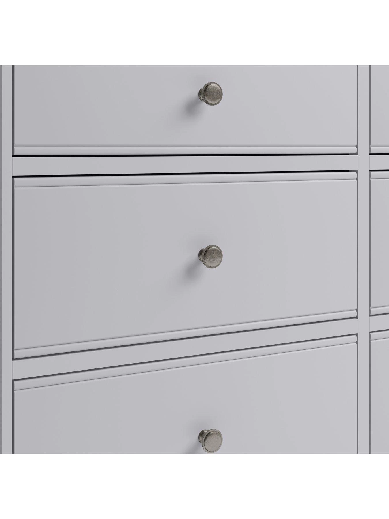 Styled with a sculpted top and elegant feet, it’s finished with pewter effect handles to complete the look. Two columns of 3 drawers offer room for all your folded essentials, from jeans to tees to underwear.