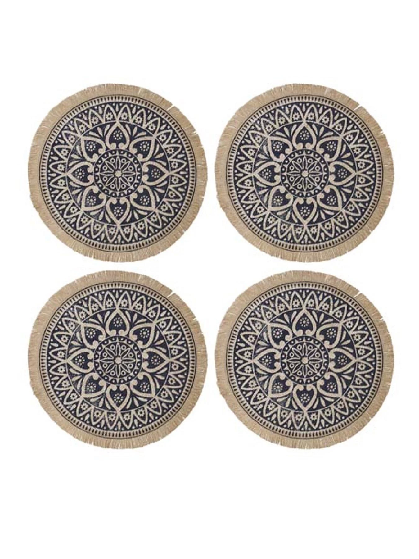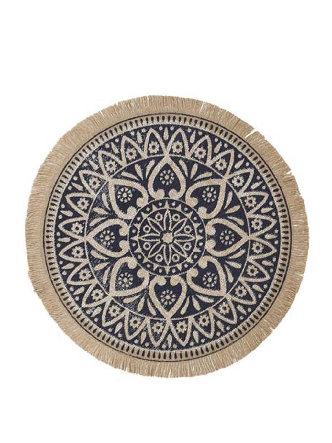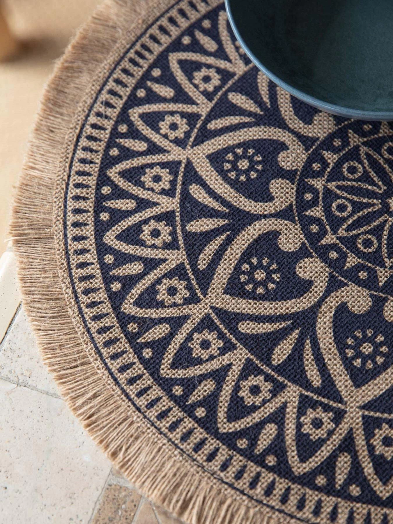 Elaborate blue mandala patterns combine with natural hessian on these Creative Tops jute placemats.