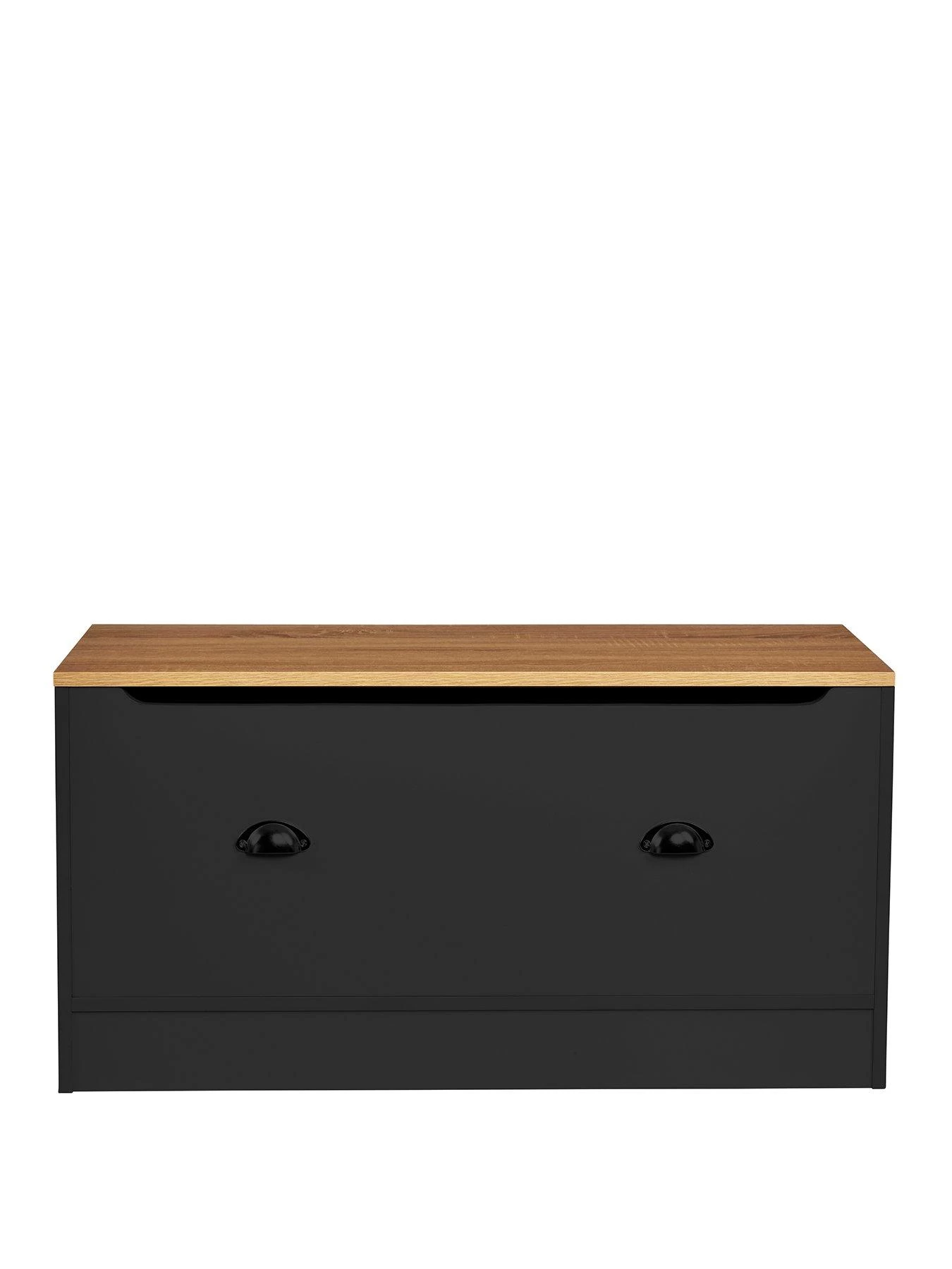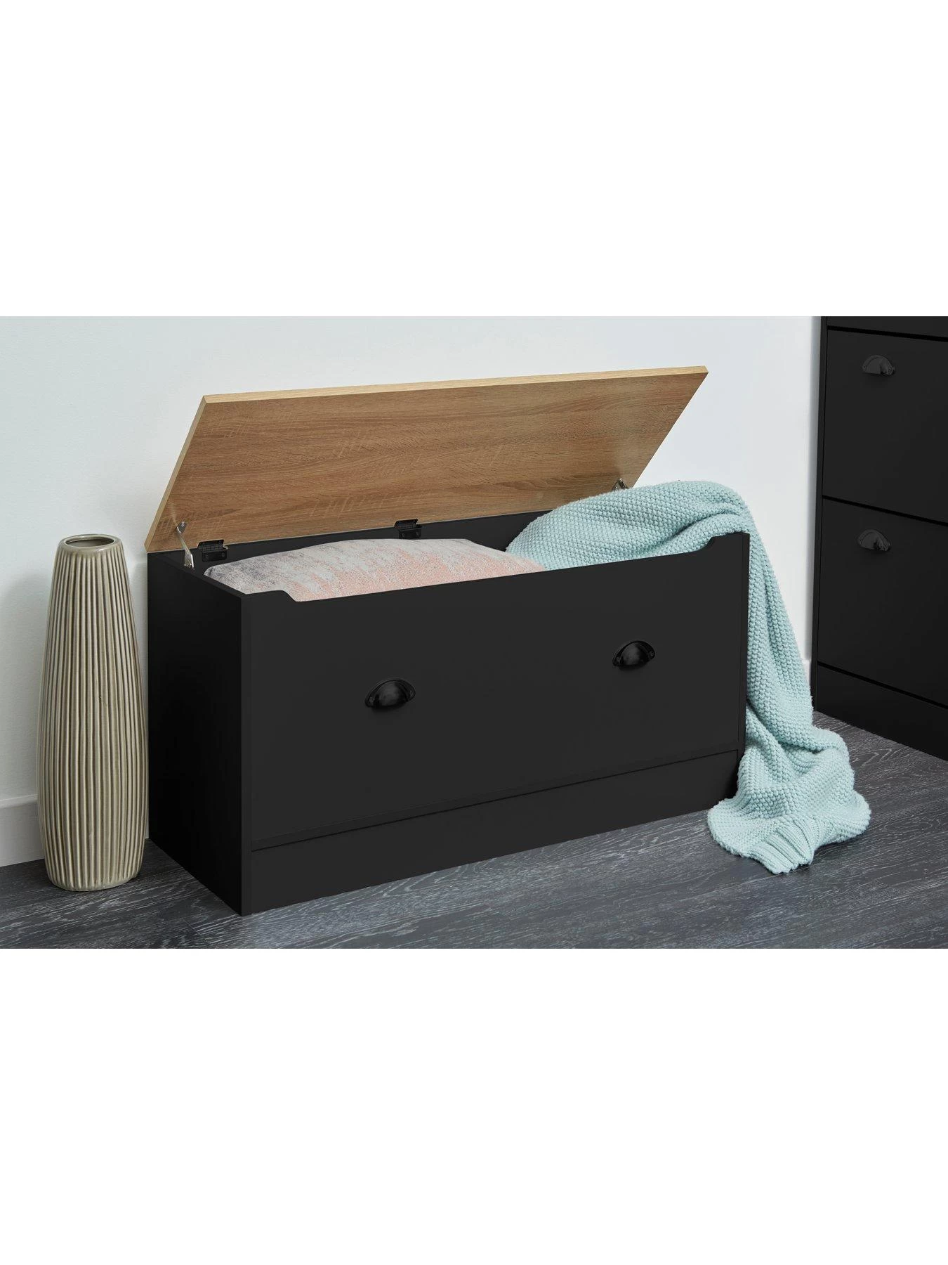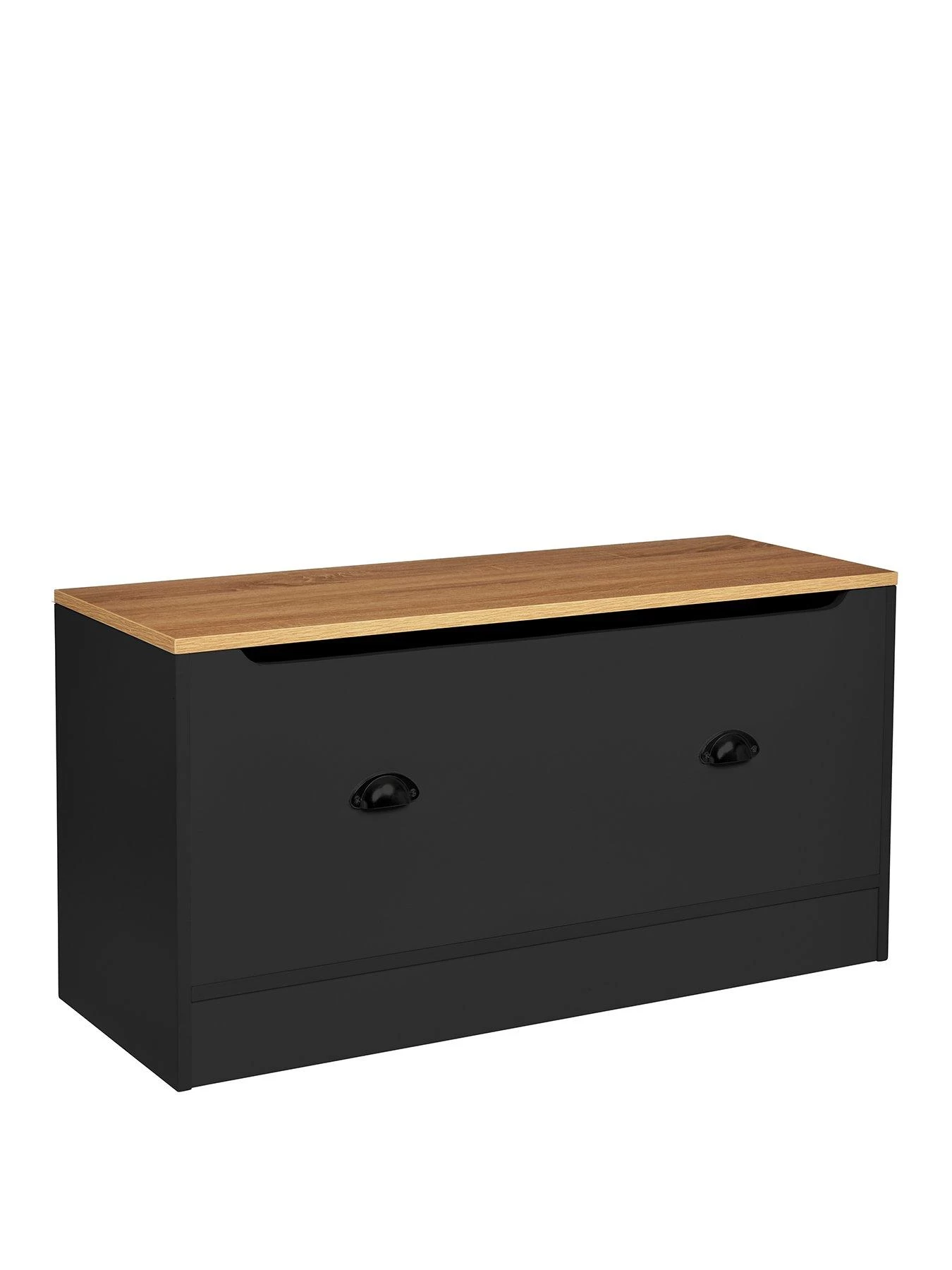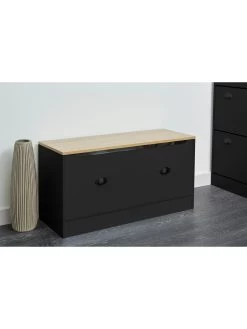 The Oak-Effect Storage Blanket Box is ideal for saving space in your home, adding a fresh yet stylish feel to the design of your room. Featuring an oak effect hinged lid, finished with two metal half-moon handles to the front for easy movability around your house. Perfect for storing blankets, shoes, toys and more to keep your room looking tidy. The contemporary style offers multiple uses and storage around the home.