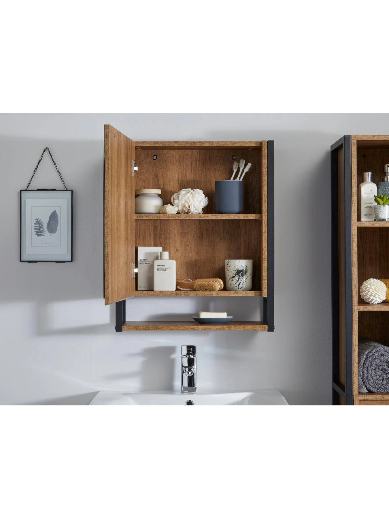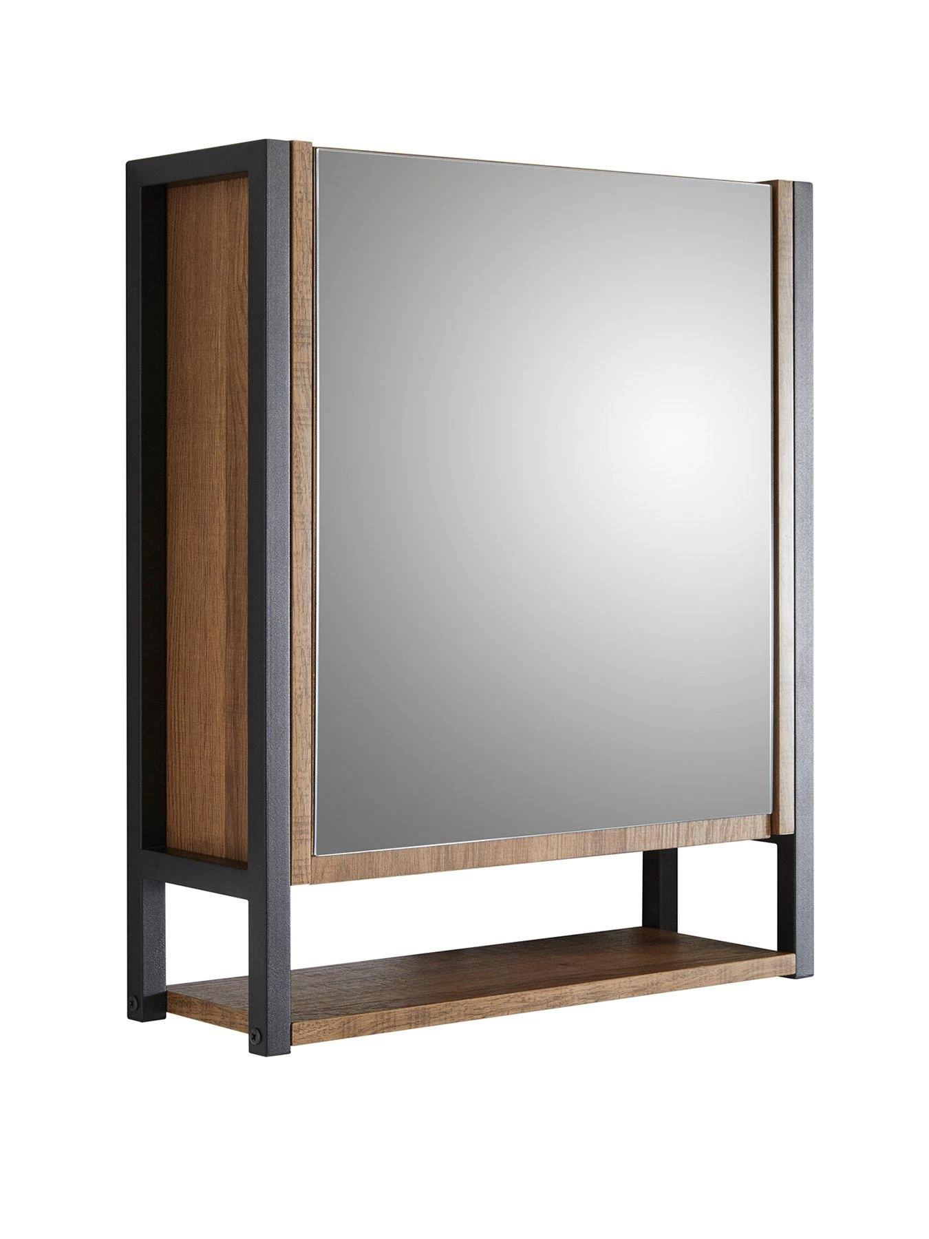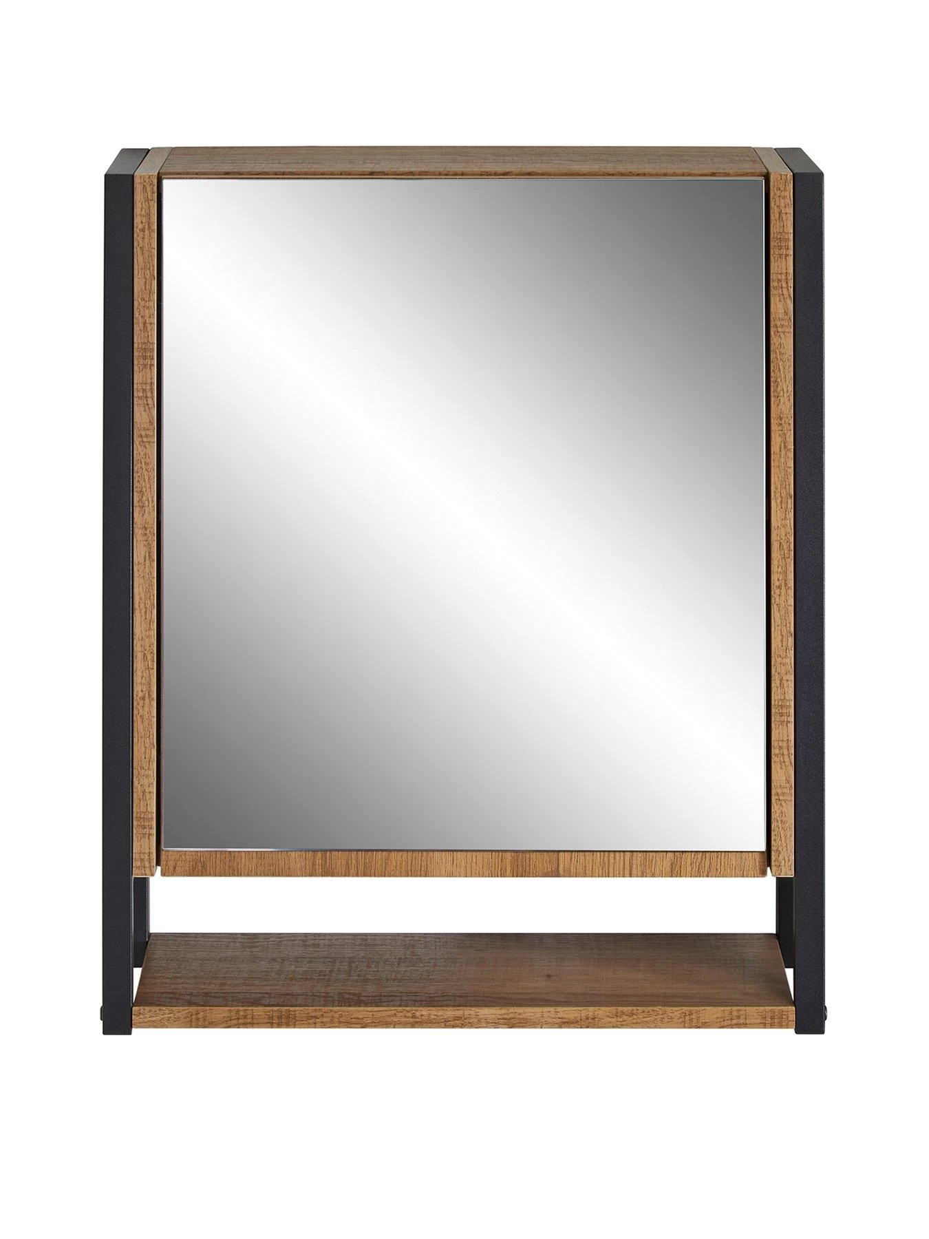 Lloyd Pascal Linley Single Mirror Bathroom Wall Cabinet in Oak Effect and Black Metal