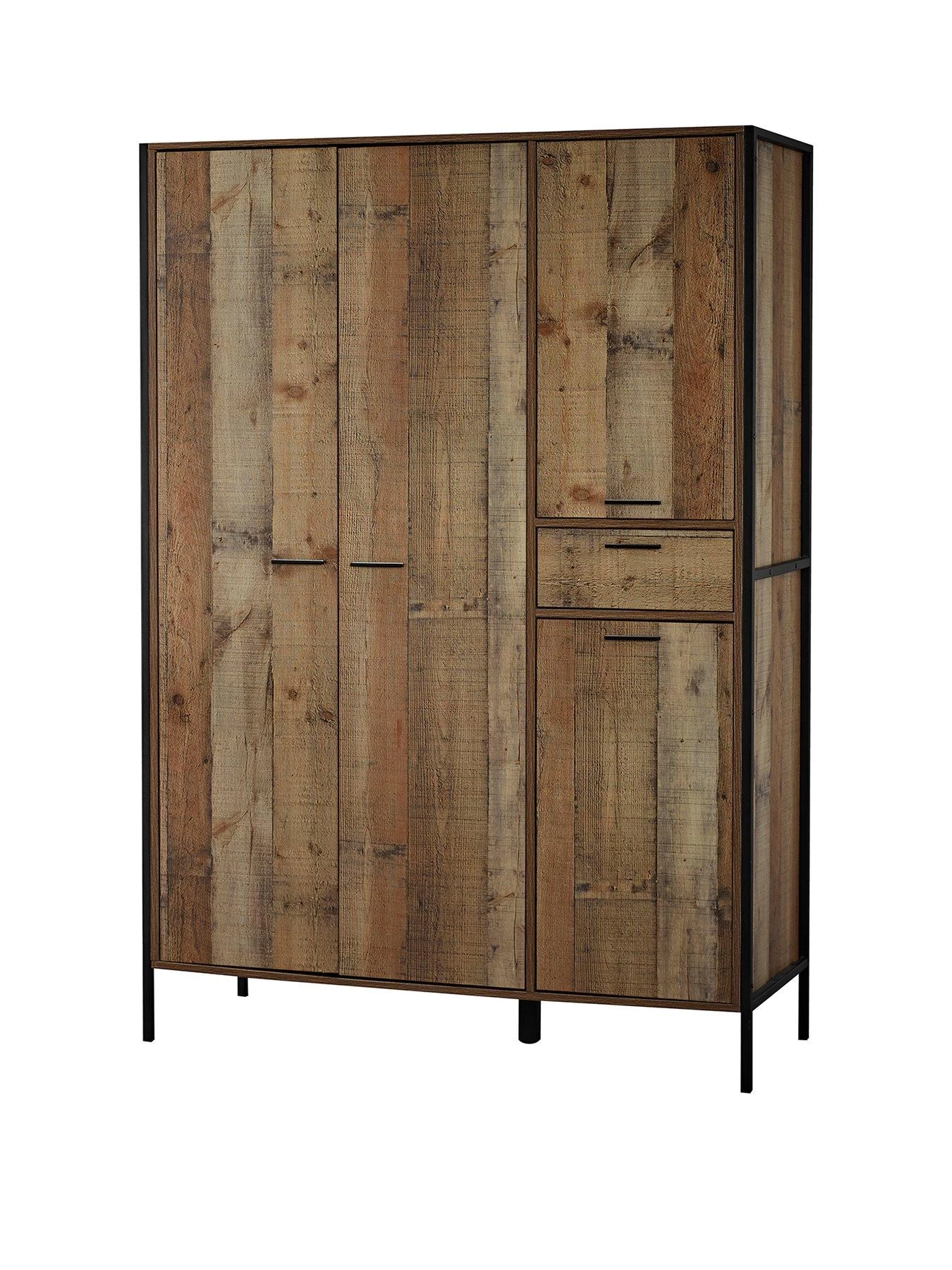 Oozing a modern industrial chic, this wardrobe from LPD Furniture’s Hoxton collection is built around a sturdy black metal frame. A contrasting texture comes from the vintage plank wood-effect, which gives the piece a rustic and distressed appearance.