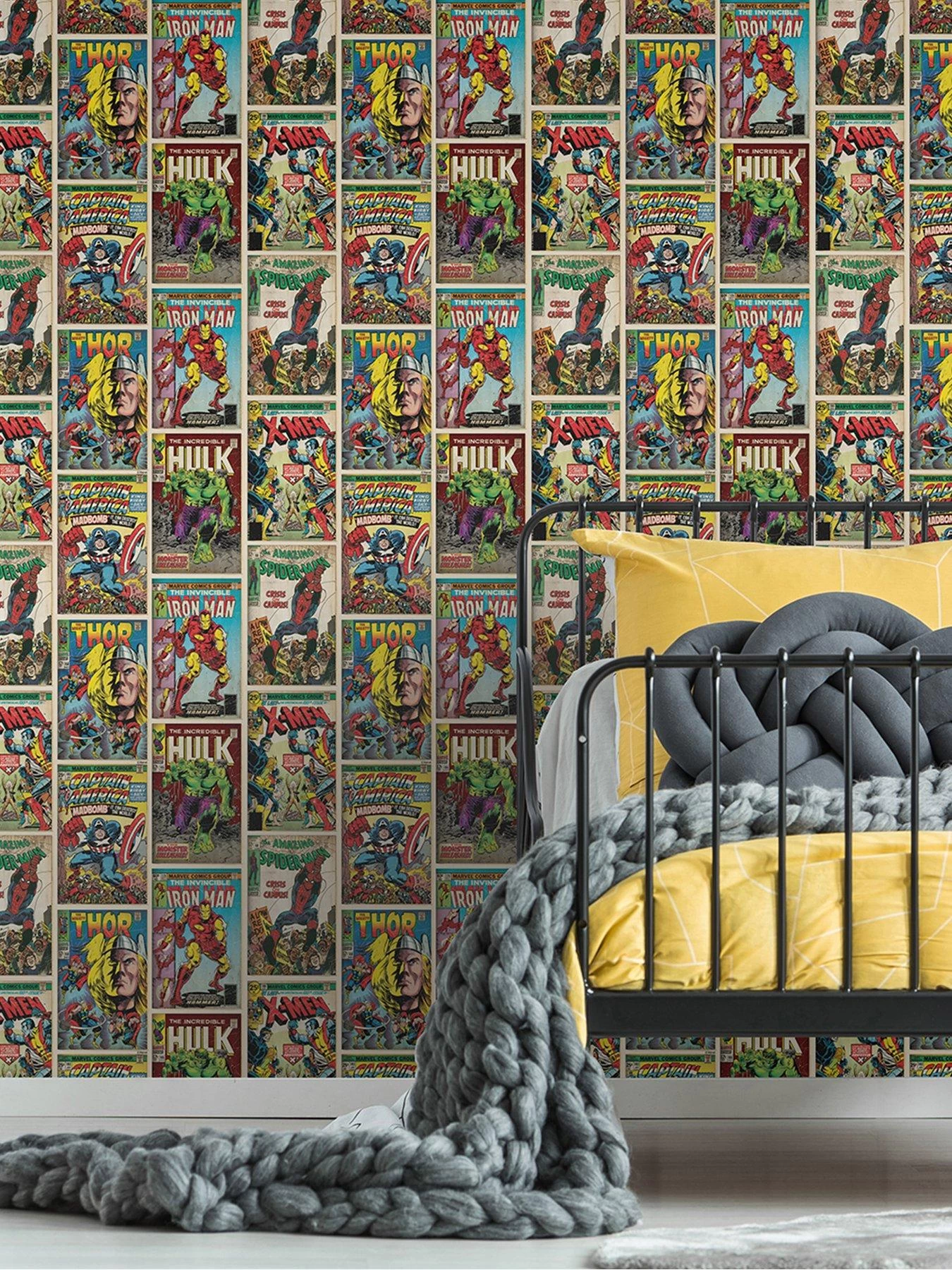 The repeating artwork features old-school comic book covers starring favourite Marvel characters including The Amazing Spider-Man, The Invincible Iron Man and Captain America, along with The Mighty Thor and X-Men.