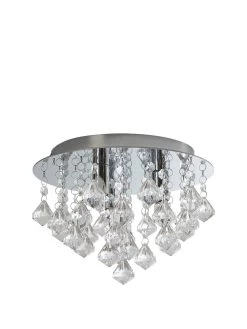 This striking fitting will add an instant transformation to any ceiling light in your home. Sitting flush for a modern look, the chrome plated fitting supports a series of clear acrylic drops that refract the light to cast a stunning pattern across your space.