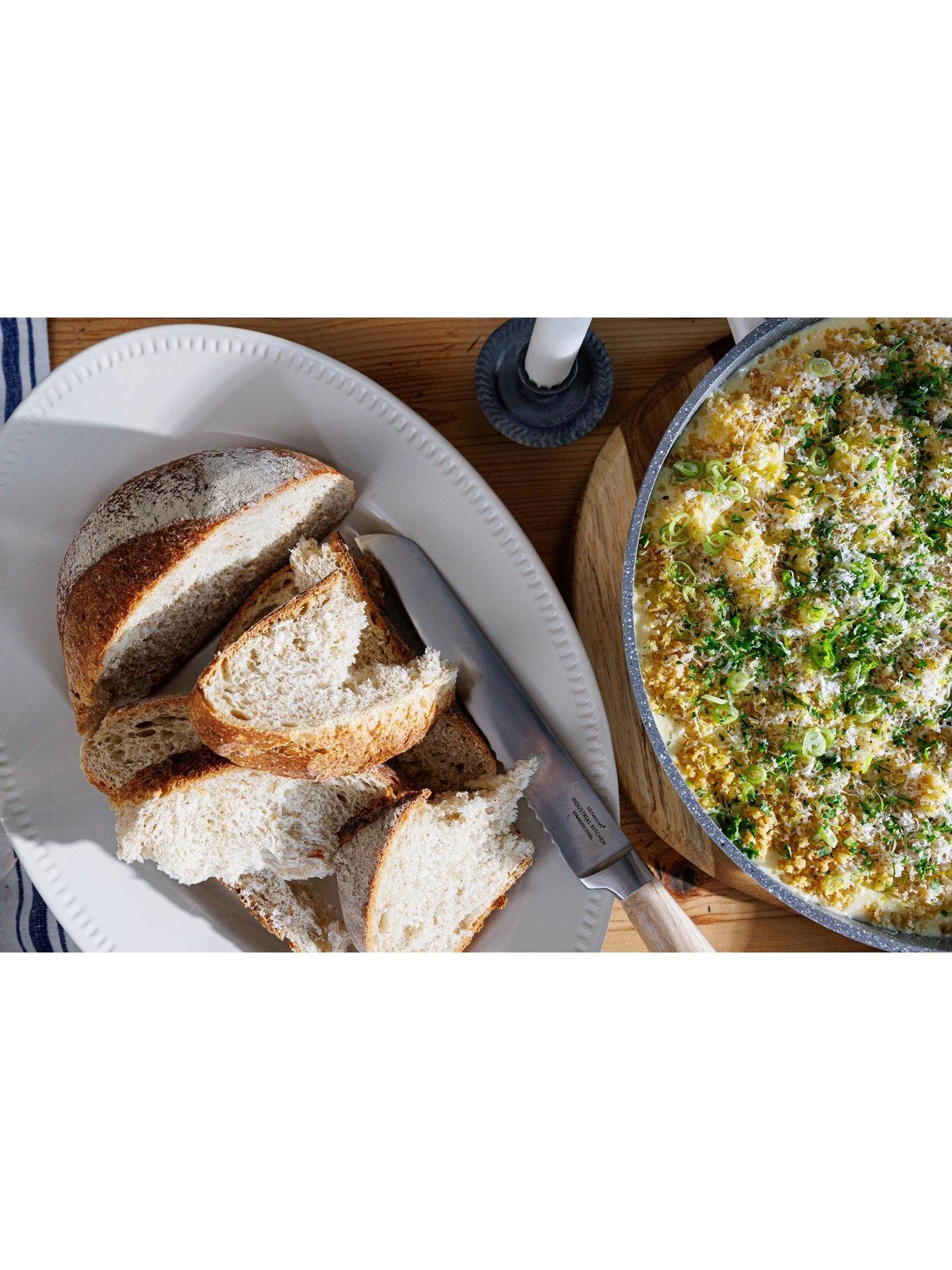 This oval platter is a perfect example of that unique elegance, featuring plenty of textured detail around the rim for a hint of artisan charm. Itโs made from high-quality, robust stoneware, making it perfect for parties, and the 39 cm length means you can serve up everything from beautifully roasted pork, chicken or beef joints to sliced seitan and delicious veggies.