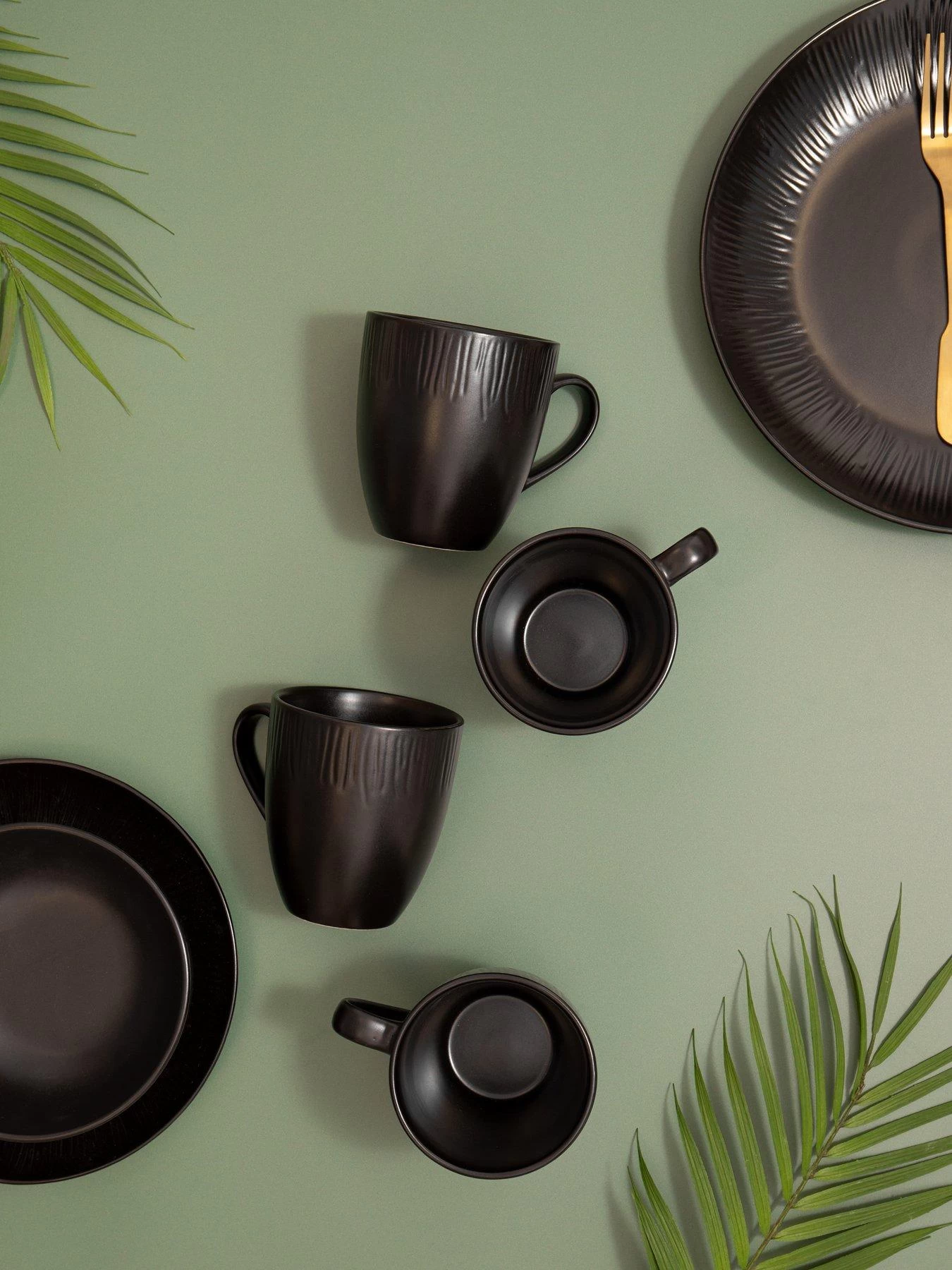 - BOTANICAL VIBES: bring the outdoors in with these black stoneware mugs