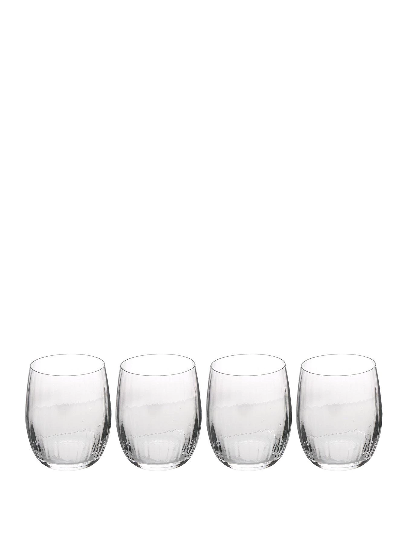 - SET INCLUDES: four crystal stemless wine glasses
