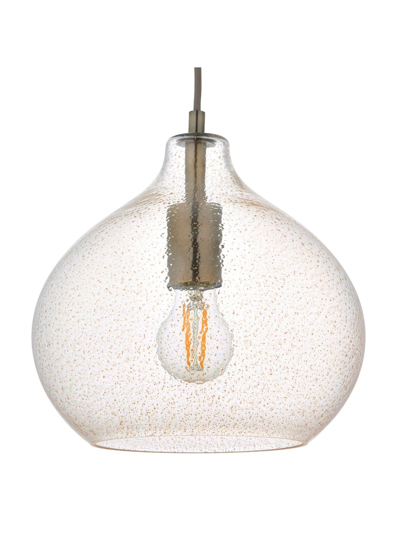 This beautiful dimple pendant is an easy to to redesign the centre of your ceiling. Made from a sleek champagne glass which is filled with thousands of flecks to give the light a bold look when it passes through. It’s supported by a steel plate in a matching champagne finish that glints when the light catches it.