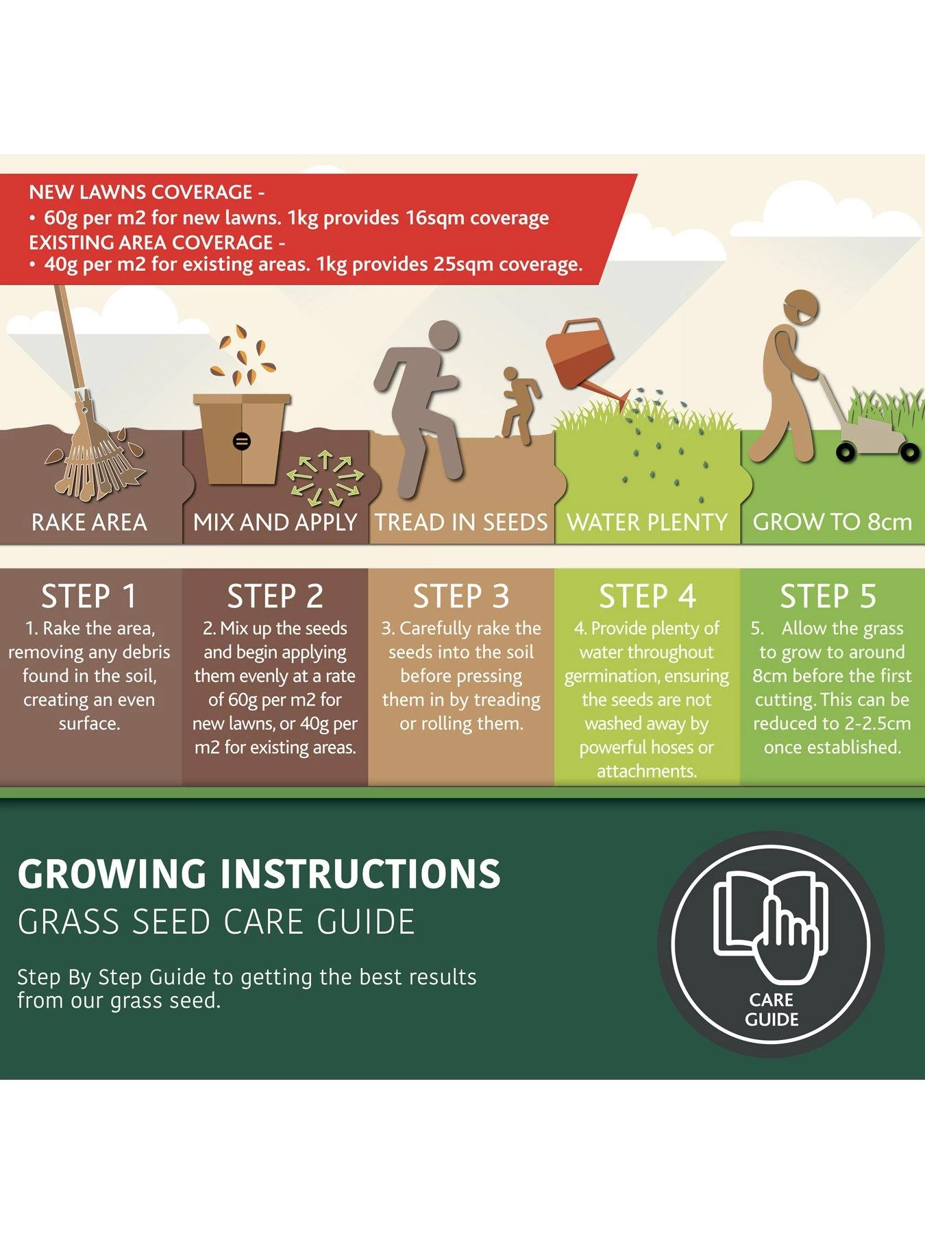 Grass generally grows above 7 degrees celsius and when there is plenty of moisture in the soil, making Spring and Autumn perfect for sowing the seed (March -Oct recommended). However, grass can grow in other seasons (if above 7 degrees) but will require more overall care and attention.