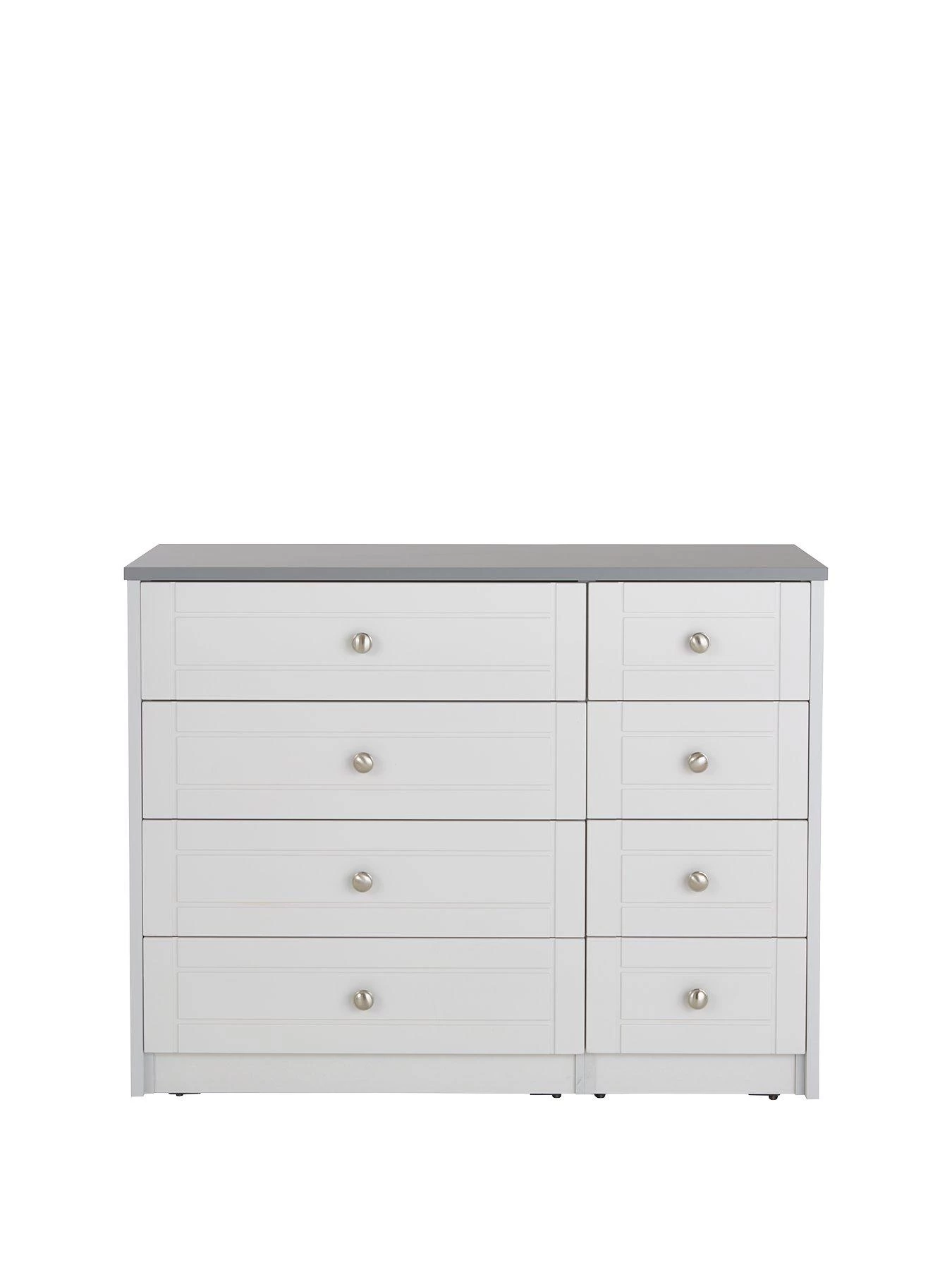 Alderley Ready Assembled 4 + 4 Chest of Drawers in White, Cream/Oak-Effect, Grey or Rustic Oak Effect/Taupe