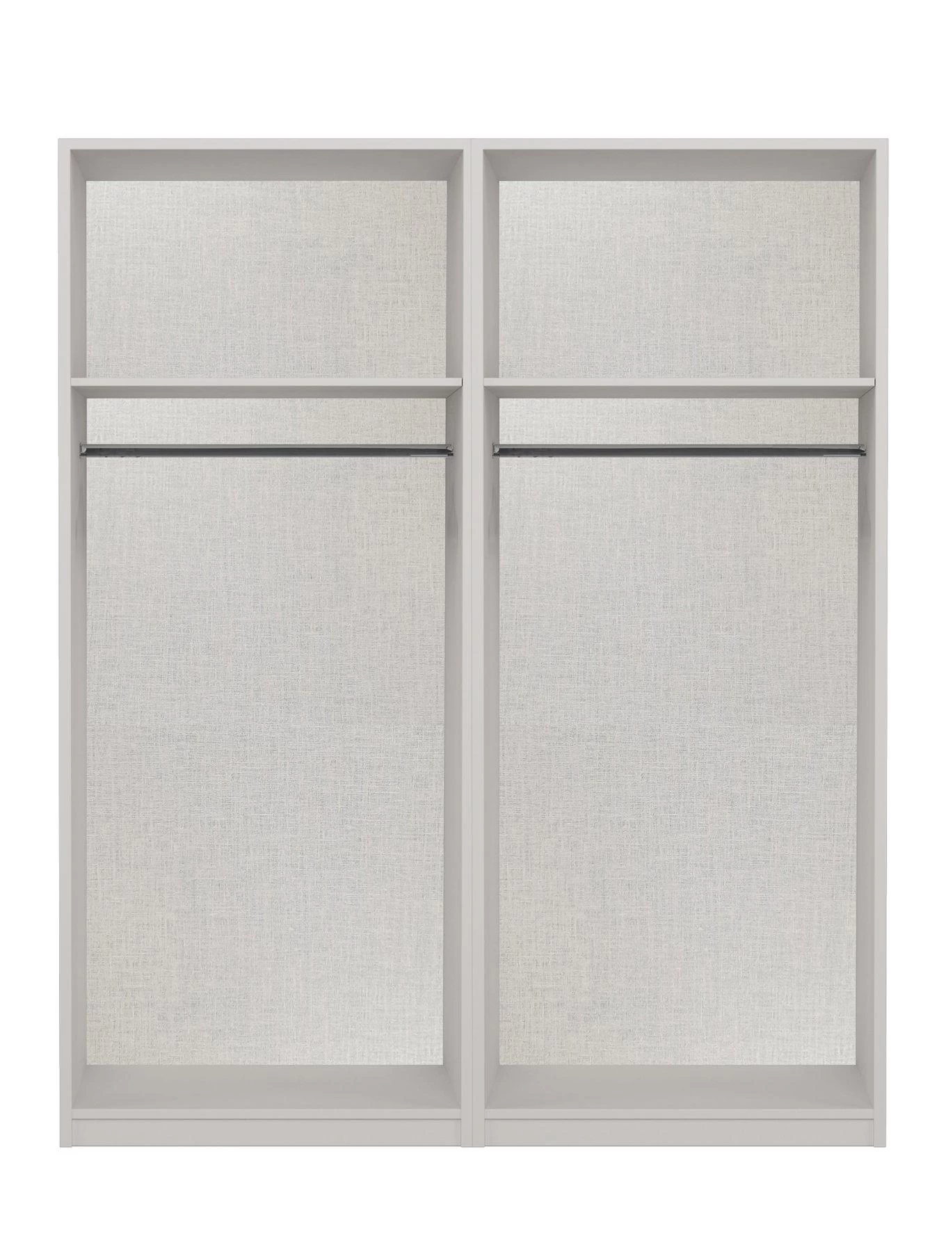 The linen-look backed interior boasts two sides (one for you, one for your partner), each with a hanging rail and high shelf for neat fashion storage.