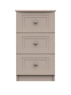 Reid Ready Assembled 3 Drawer Bedside Chest in Taupe or White – Made in the UK