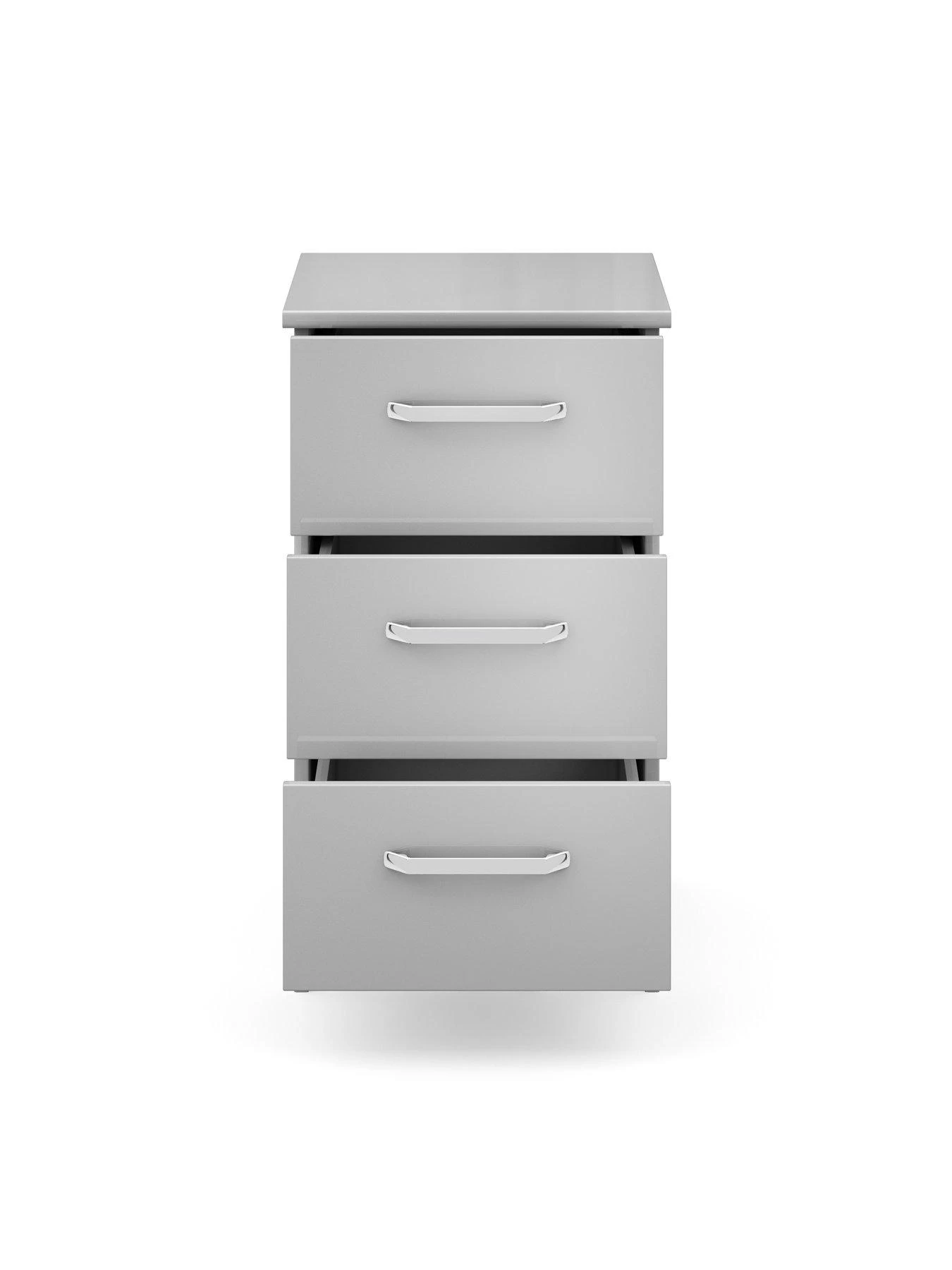 Sanford Ready Assembled High Gloss 3 Drawer Bedside Chest in Light Grey, Dark Grey or White