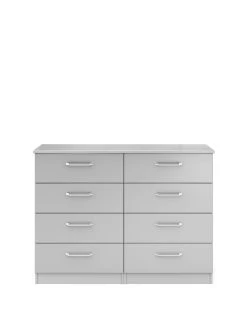 Sanford Ready Assembled High Gloss 4 + 4 Chest of Drawers in Light Grey, Dark Grey or White