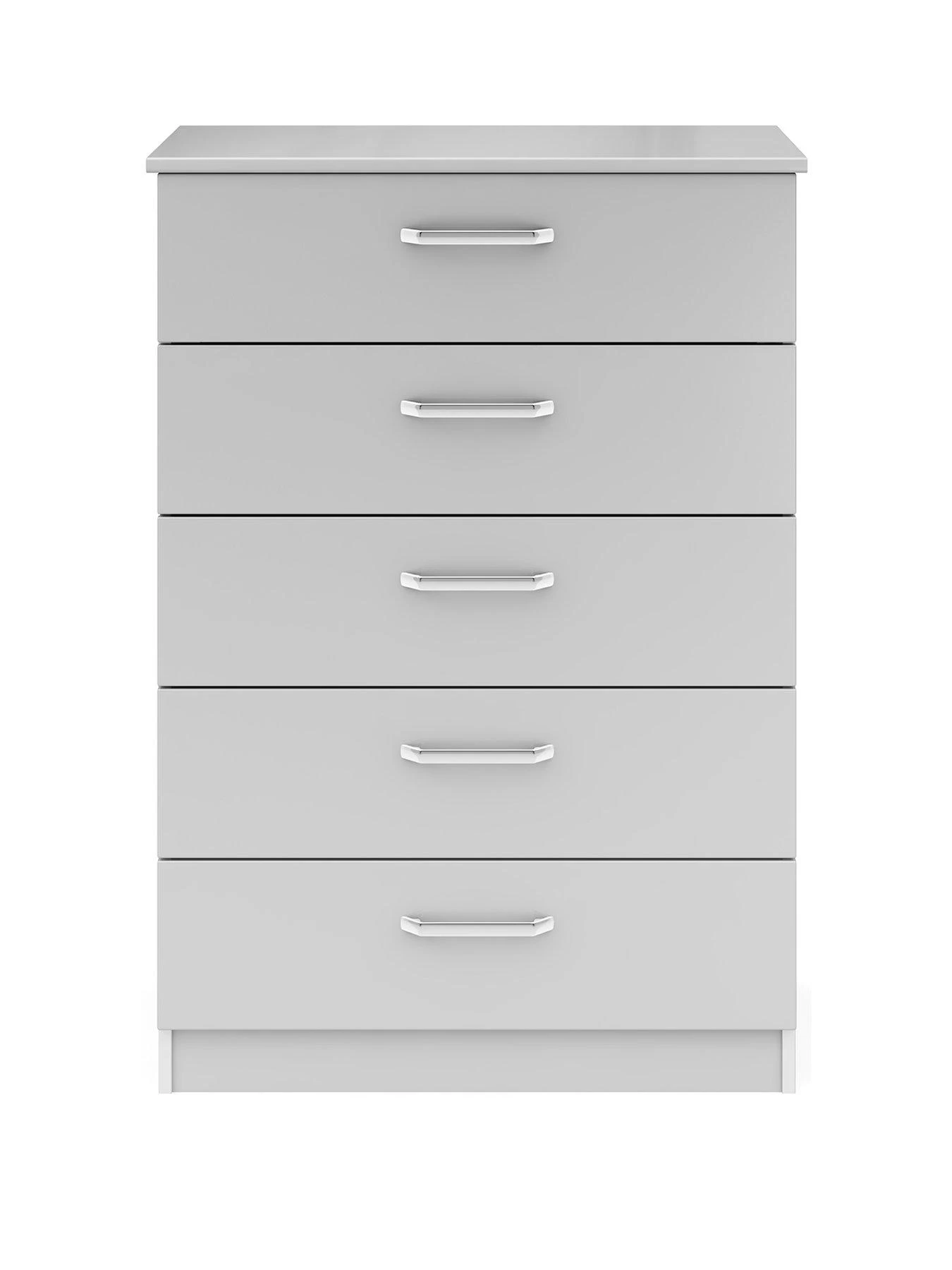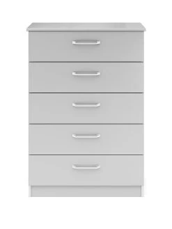 Sanford Ready Assembled High Gloss Chest of 5 Drawers in Light Grey, Dark Grey or White