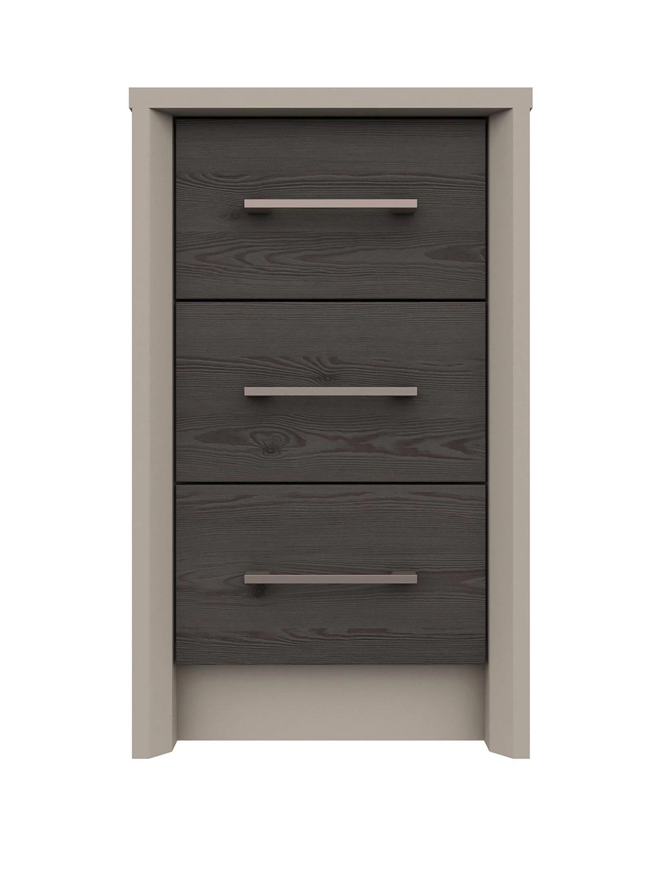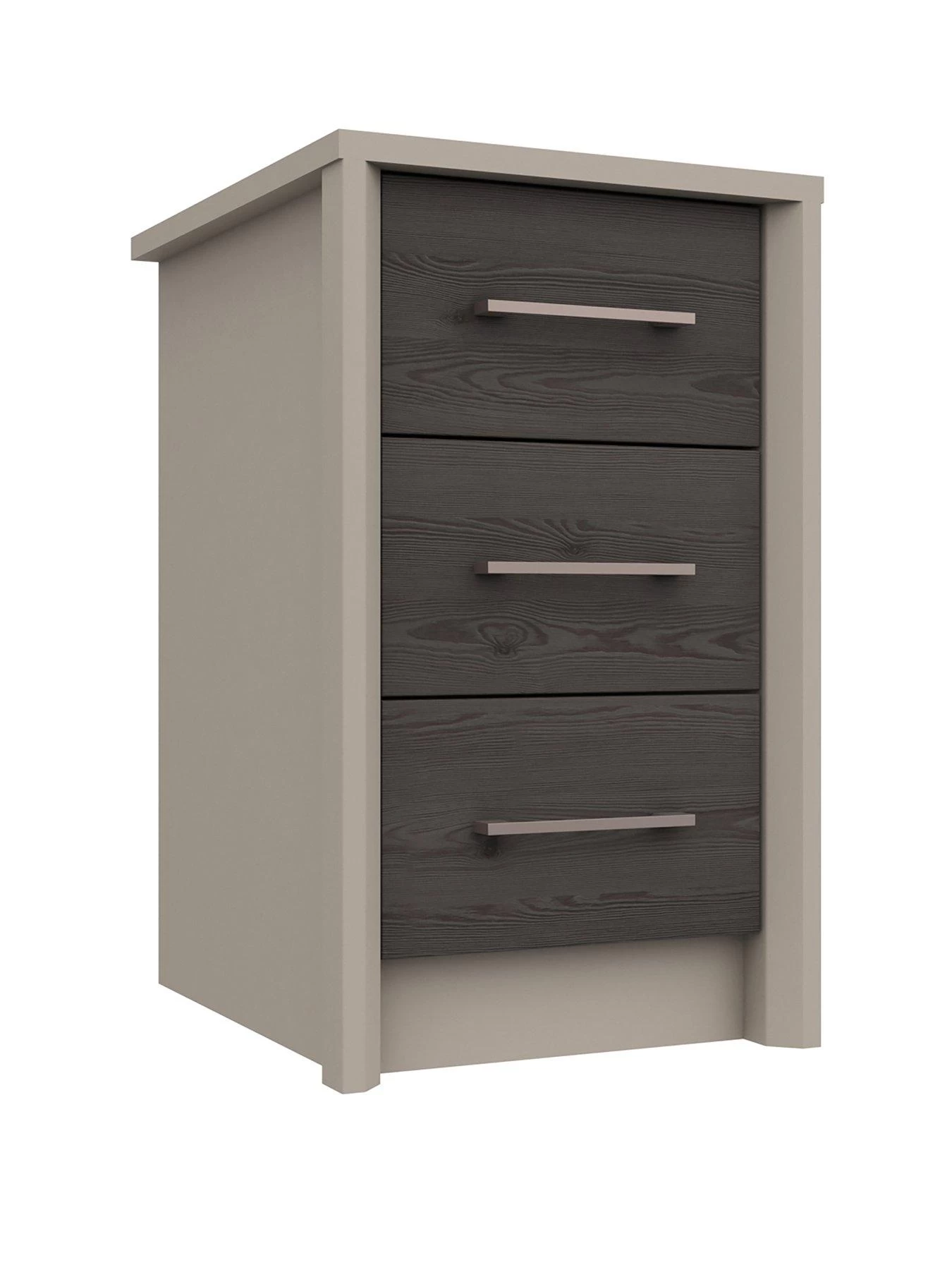 Smyth Ready Assembled 3 Drawer Bedside Chest in Taupe/Dark Grey or Taupe/LightĀ Grey – Made in the UK