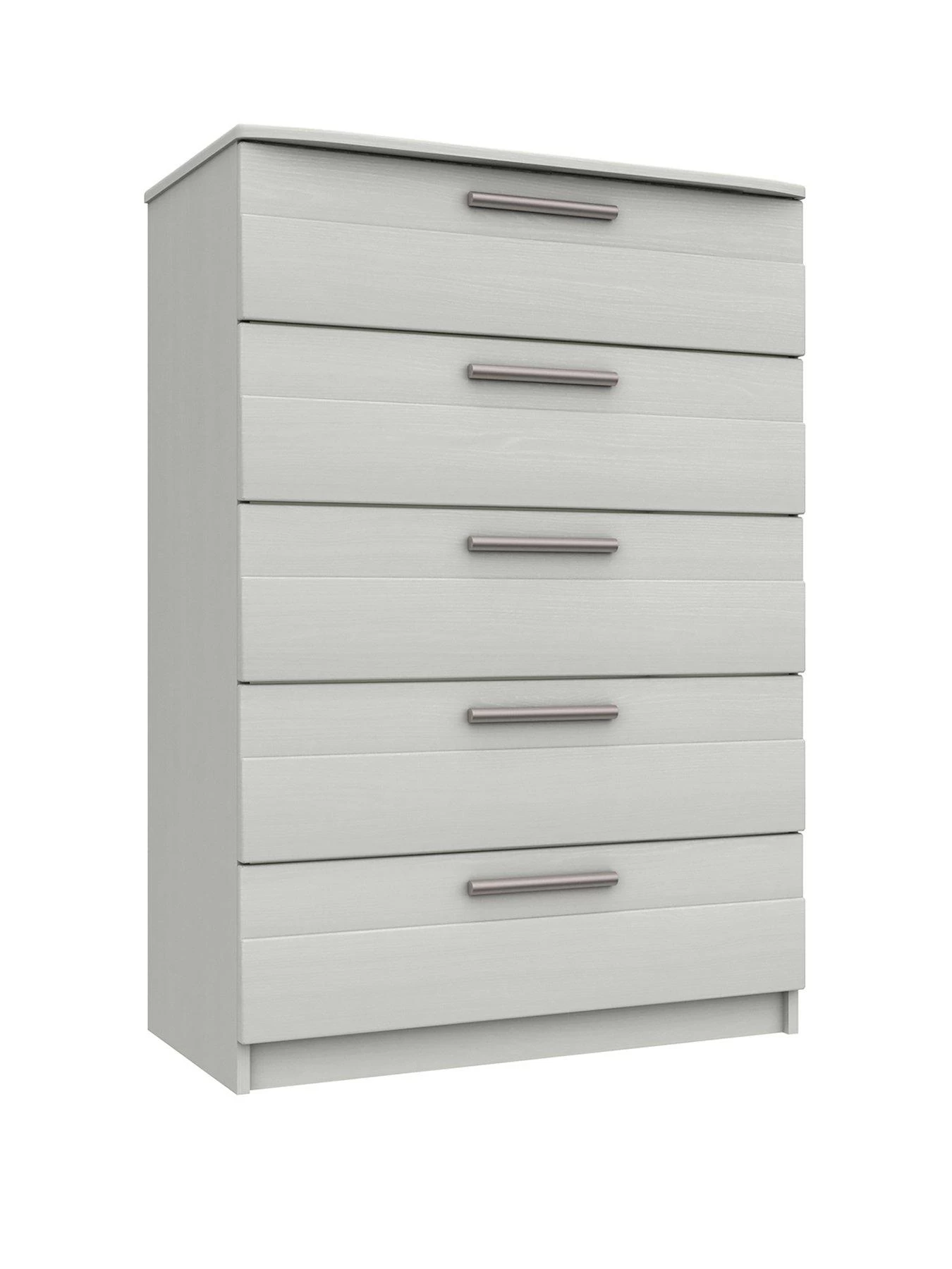 Taylor Ready Assembled Chest of 5 Drawers in Light Grey, Graphite and White – Made in the UK