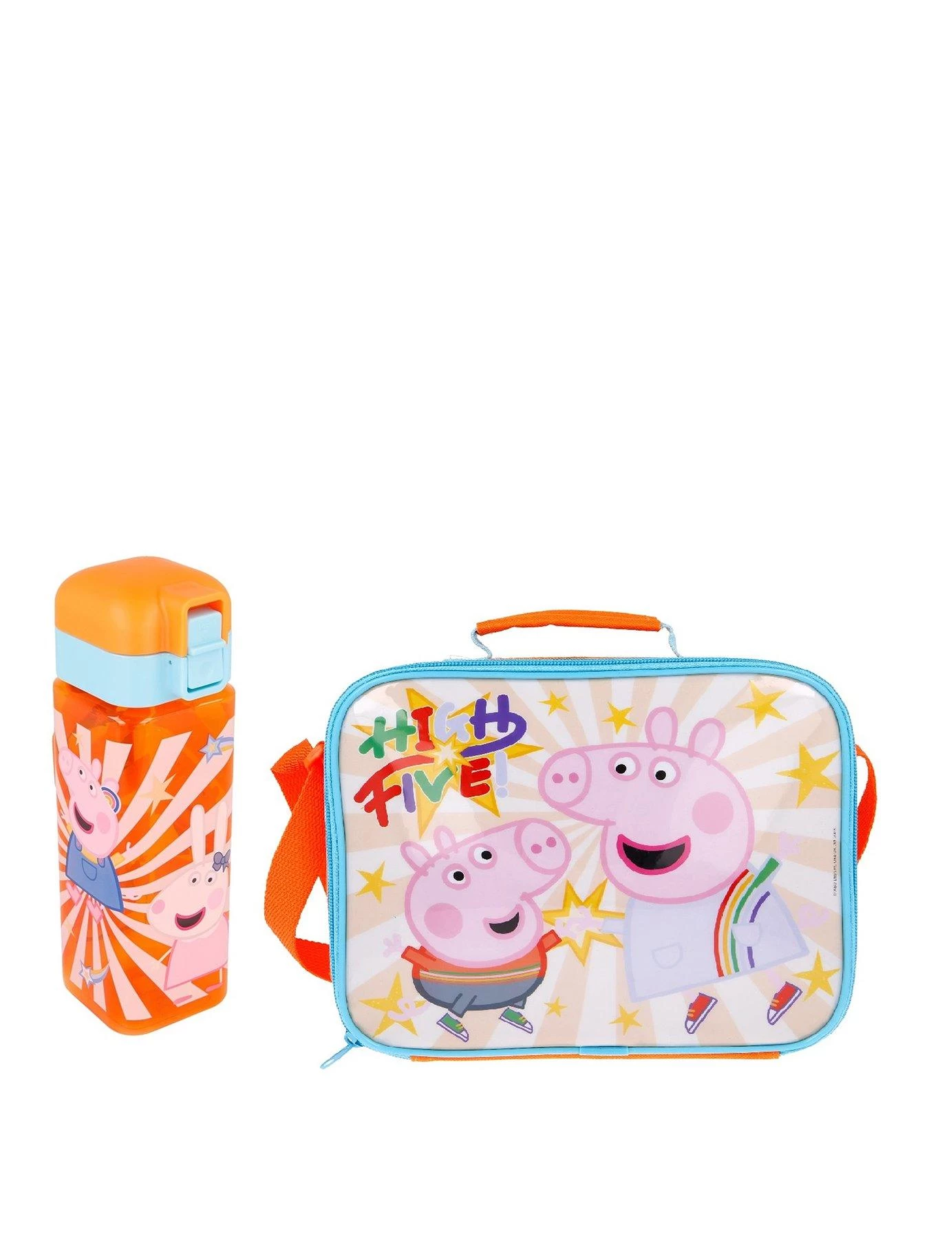 Practical and original cooler bag for food, ideal for kids to carry their lunch or snacks in their outings away from home. It includes a grip handle and shoulder strap for easy transport. Sizes of Products (Pepper Pig Water Bottle Height 0CM, Width 10.5CM, Depth 25.2CM Pepper Pig Sandwich Bag Height 25CM, Width 7.3CM,Depth 20CM)