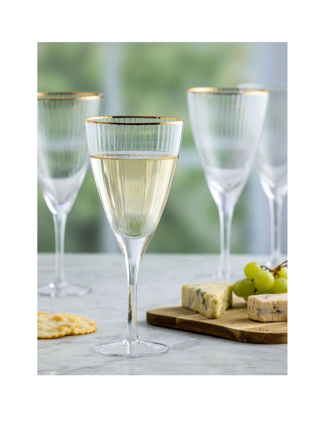 Handmade from high-quality, durable glass, each one flaunts a stunning ribbed bowl and has been dipped in real gold for a luxurious sparkling finish. The 420 ml bowls use subtle curves to build beauty, and this effect continues onto the gently tapered stems.
