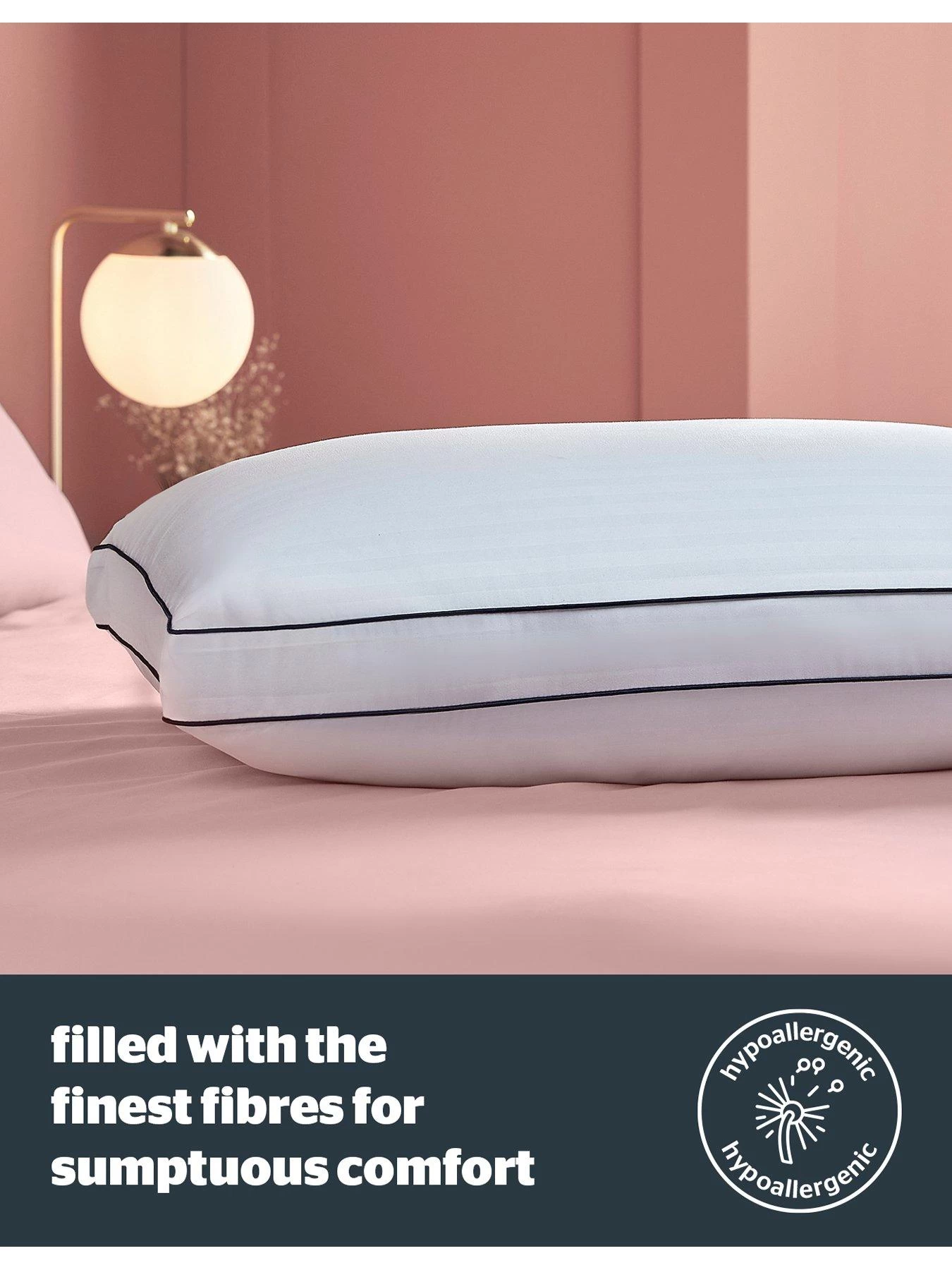 - Featuring an elegant, embossed design with stylish piping detail and filled with the finest fibres for a blissful slumber.