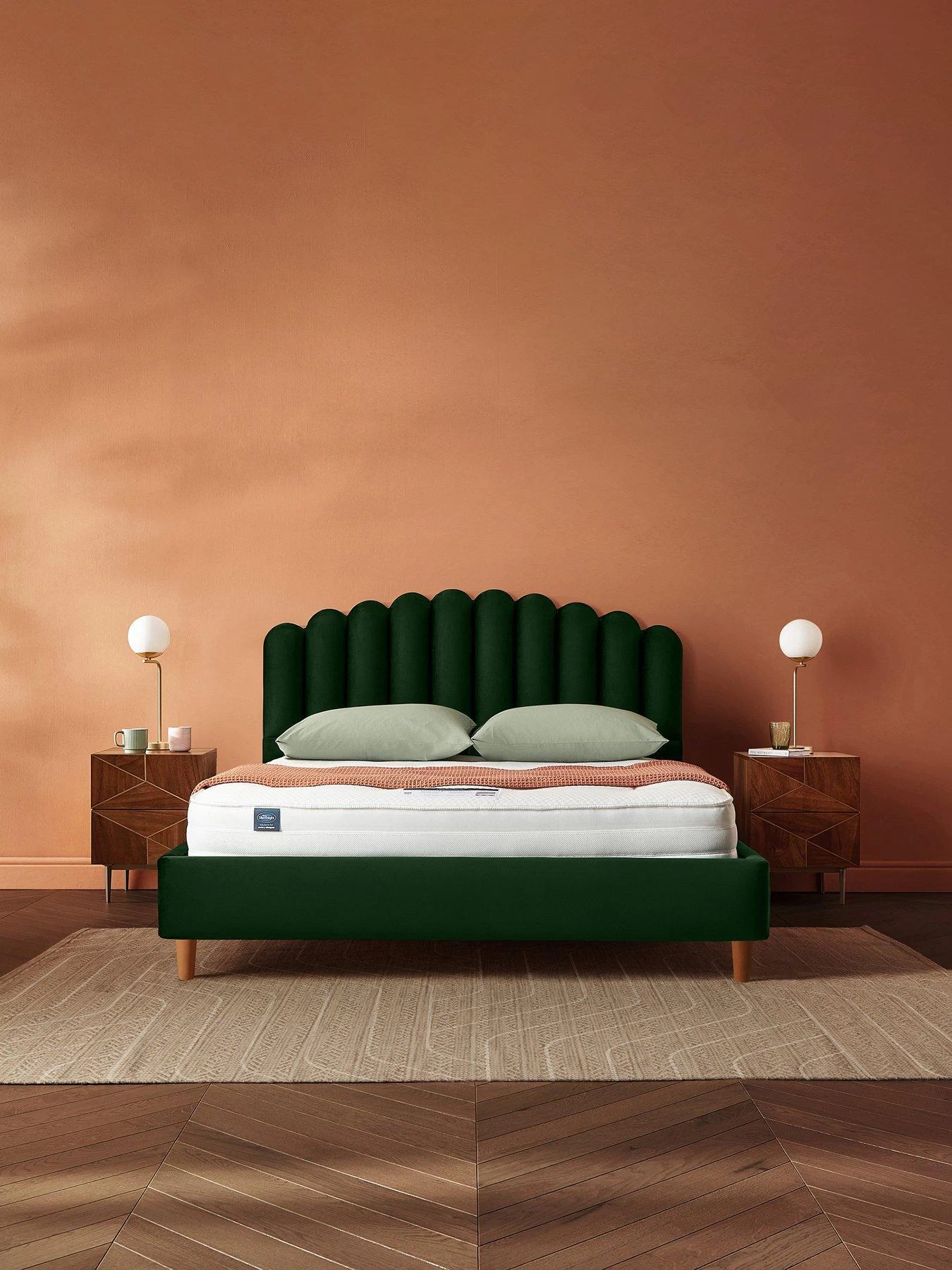 With a fan-shaped headboard and a sumptuous finish in premium velvet, this trend-led bed frame will set the tone for the rest of your bedroom. It’s handcrafted here in the UK, using premium upholstery fabric and FSC® (C104461) Certified Timber, the luxury velvet fabric is available in 5 colours (Dusky Pink, Dark Grey, Olive, Silver or Rainforest), so you can find the right style to suit you.