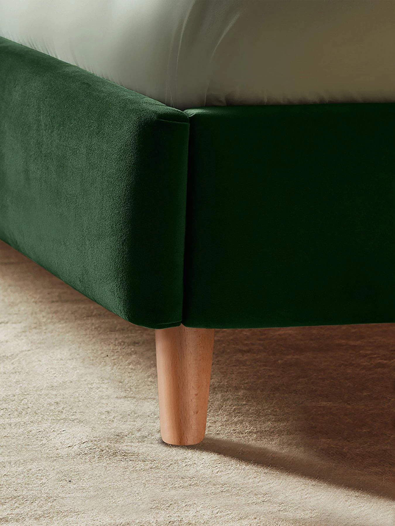To ensure the Oriana bed frame provides ultimate comfort, the headboard is filled with plush soft cushioning, to support you on those lazy mornings in bed. Complete with wooden legs, the Oriana bed frame makes its mark in any space.