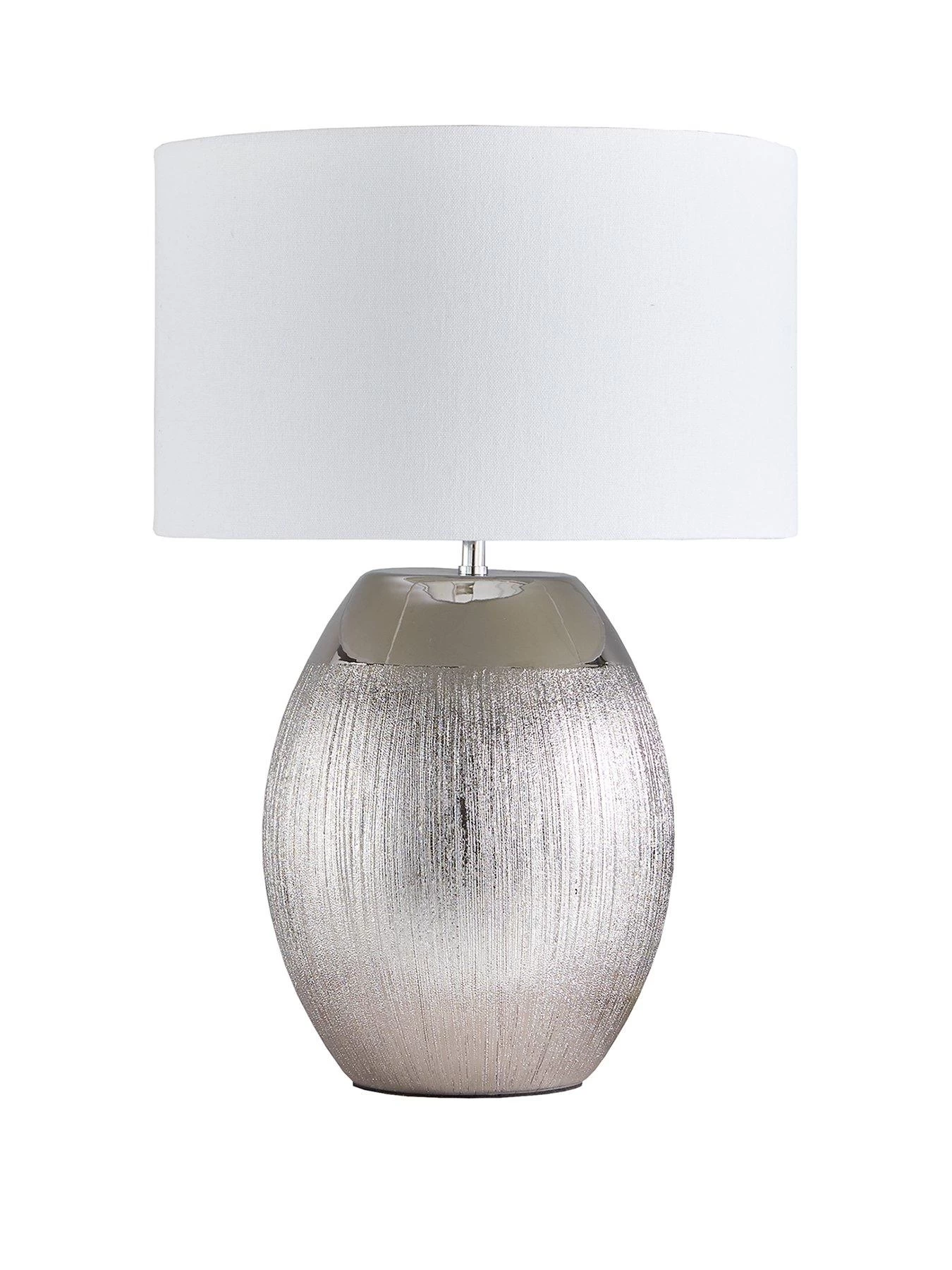 Standing 66.5 cm tall with the shade, the silver-toned ceramic base combines two different finishes to striking effect. A band across the top is smooth and reflects light beautifully, while the bottom section takes advantage of a textured surface to create a sparkling visual. It’s topped with a coordinating shade that completes the look and helps your space to feel warm and inviting.