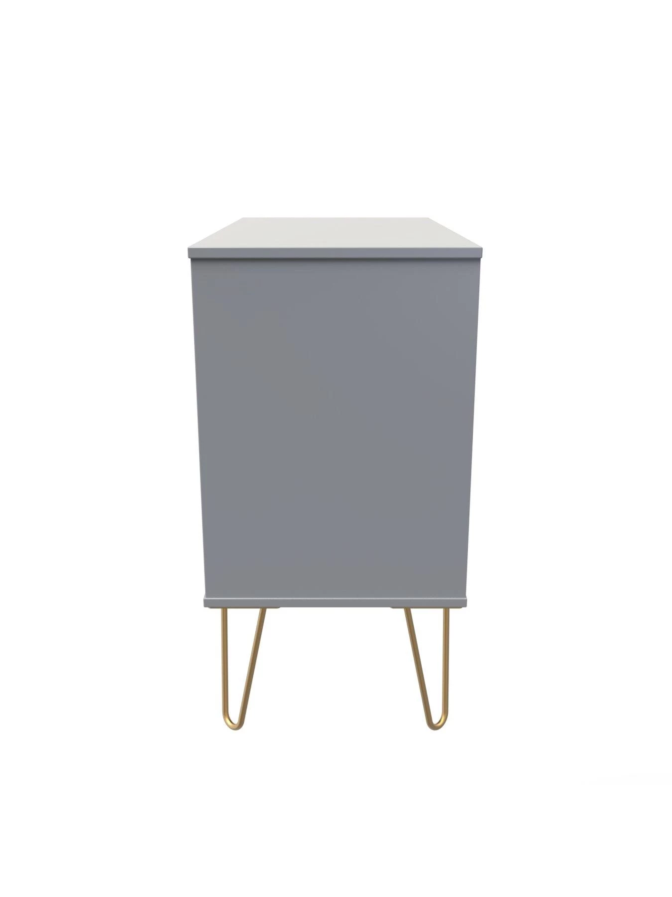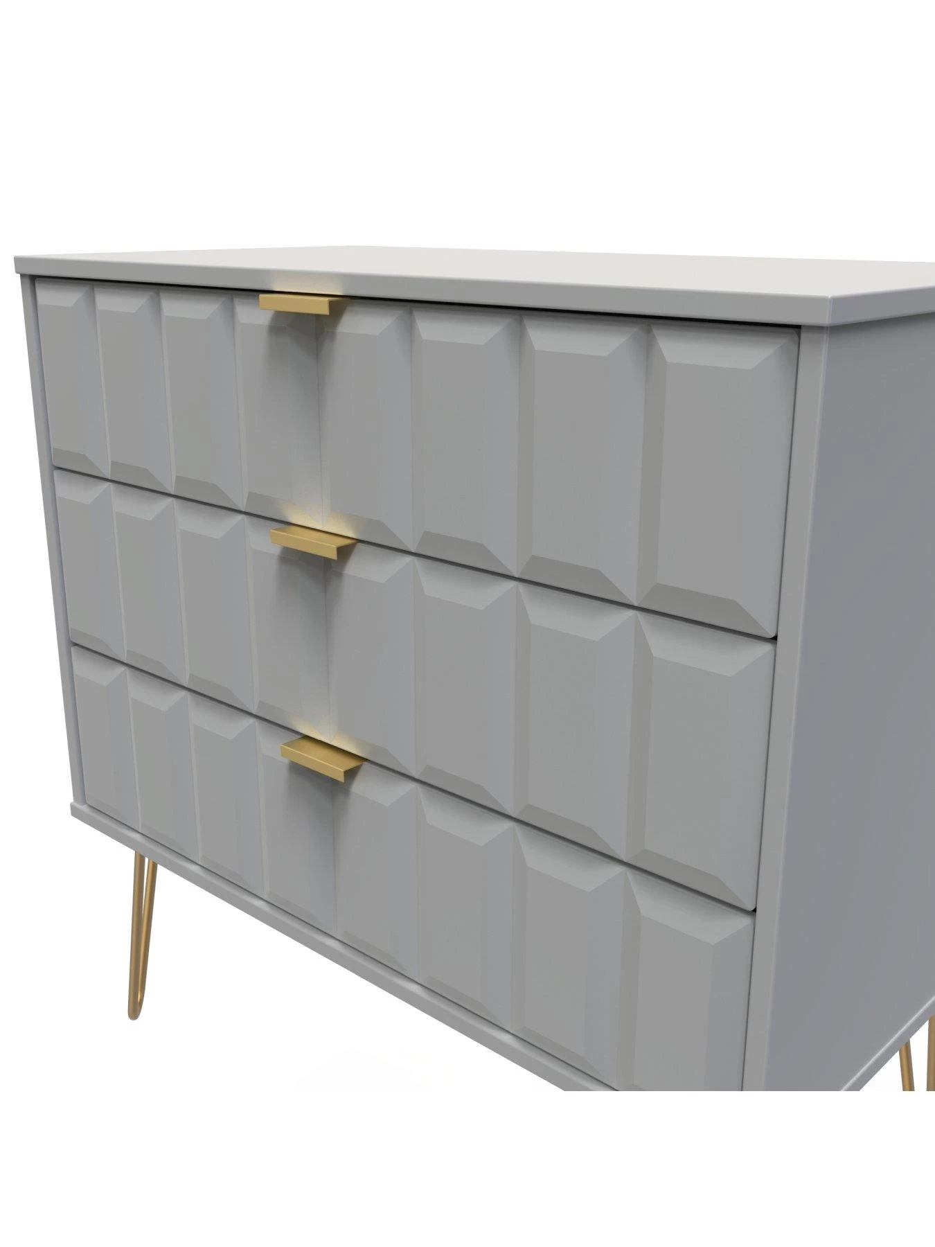 Available in a choice of black, grey or white, its scratch-resistant surface stays looking good for longer, and it’s finished with shiny gold coloured hairpin legs and matching handles. The three drawers provide lots of room for your folded fashion, and they sit on smooth easy-glide metal runners. The drawers are lined in linen-effect so they look as good on the inside as they do on the outside.